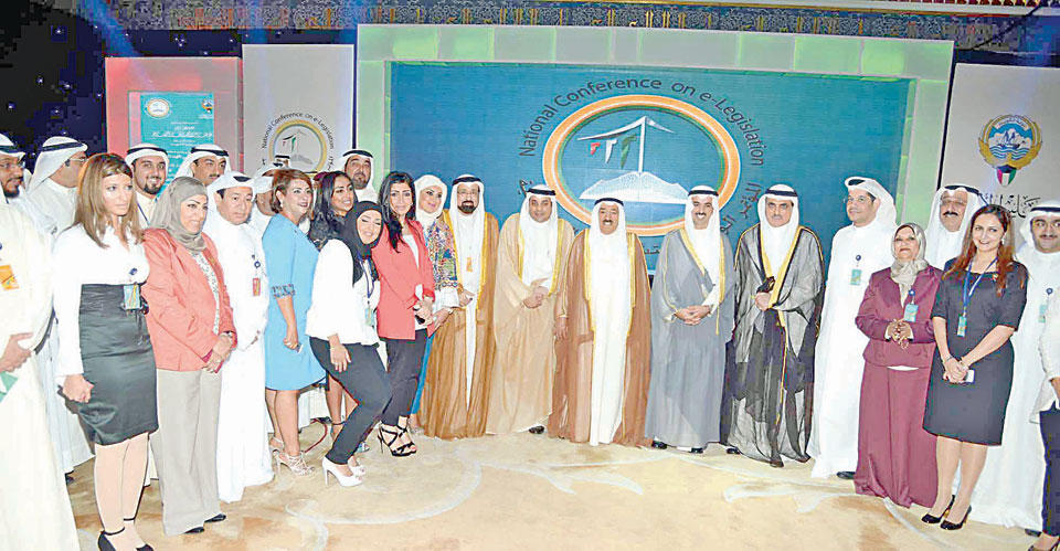 وأضاف الراشد أنه بإسدال الستار على هذا المؤتمر واختتام فعالياته، تكون ساعة العمل قد أزفت، وآن أوان الفعل والتنفيذ، فالأدراج اتخمت بالدراسات والتوصيات ومحاضر اجتماعات اللجان وفرق العمل، وبات من المحرج أن نكرر أنفسنا ونراوح في مكاننا، لذلك نتعهد لكم يا سمو الامير، والحضور شهود، بأننا سوف نحسن استثمار رعايتكم السامية للمؤتمر الوطني للتشريعات الإلكترونية ونعدكم ـ حفظكم الله ـ بأن نبادل تشريفكم لنا اليوم بتحية تليق بسموكم وبمقامكم الكريم، فلا سبيل لنا إلا النجاح، وليس أمامنا سوى النجاح، ولن نقبل بغير النجاح، وهو ما سيكون بإذن الله تعالى وبتوفيقه.وزاد «أن يحظى مؤتمرنا هذا برعاية أبوية سامية من لدن حضرة صاحب السمو الأمير ـ حفظه الله ورعاه ـ وهو المؤتمر الذي يعنى بالتشريع الإلكتروني، وتكنولوجيا المعلومات والاتصالات الرقمية وجميع ما أفرزته العولمة من حداثة وتقدم وتطور علمي، فلهذا دلالة عظيمة ورسالة ذات معنى جلي، أن رأي الدولة وكبيرها يولي عناية تامة لمتطلبات العصر ويواكب ببصيرته الثقابة احتياجات الدولة والأمة ليكونا في مصاف الدول والأمم المتقدمة».وقال الراشد لقد كانت ومازالت رغبتكم السامية بتحويل الكويت مركزاً مالياً وتجارياً عالمياً تشكل مصدر إلهام لنا، وفي الوقت نفسه كانت تمثل لنا هاجساً في كيفية تنفيذ رغبتكم السامية وتطبيقها على أرض الواقع، ولطالما تساءلنا: ما الذي يؤخرنا؟ أو ما الذي ينقصنا لتحقيق هذا الحلم الذي طال انتظاره؟ فالكويت ـ بحمد الله وبفضل منه ـ تملك كل المقومات التي تؤهلها لتحقيق هذا الحلم «موقع استراتيجي فريد وحكم رشيد، استقرار أمني، اقتصاد متين، بنى تحتية حديثة، فوائض مالية، دخل مرتفع، مؤسسات دستورية، نظام ديمقراطي، مجتمع شاب، همم عالية، وغير هذا الكثير من المقومات التي تتمناها معظم الدول والشعوب، فما الذي يؤخرنا عن تنفيذ هذا الحلم؟ أطرح هذا التساؤل ولا أتوقع أن يكون الجواب، أن التجاذبات والمماحكات وما يدور بين فينة وأخرى من حراك سياسي هو السبب في إبطاء انطلاقة البلاد وتحولها مركزاً مالياً وتجارياً عالمياً.وأضاف الراشد لا يمكن لهذه الإجابة أن تكون محل إقناع كائن من كان، ويستحيل أن تكون حجة وذريعة للتراخي والتقاعس، فمجلس الأمة ـ وفي ظل كل ما سبق ـ حقق خلال فترة وجيزة إنجازا على مر تاريخنا البرلماني، وفي مجال التعاون، فإن مجلس الامة لم يتردد أو يتأخر في إقرار التشريعات والقوانين التي تحتاجها الحكومة لتسيير أعمالها ولعل المؤتمر الوطني للتشريعات الإلكترونية الذي انطلقت فكرته من مجلس الأمة، والذي يدار بتعاون وثيق ومشاركة فاعلة مع الحكومة يشكل أبهى صورة من صور التعاون بين السلطتين التشريعية والتنفيذية. وأشار الراشد إلى أن كل هذا ـ يا صاحب السمو ـ لم يأت من فراغ، ولم يكن وليد الصدفة، إذ لولا توجيهاتكم السديدة، ورغبتكم الأكيدة في تحقيق التقدم لهذا الوطن، بعد أن حقق المولى عز وجل على أيديكم التقدم لهذا الوطن، بعد أن حقق المولى عز وجل على أيديكم الرخاء والعيش الرغيد والحياة الكريمة لشعبكم الأبي، بات من الضروري وضع أسس اكتمال دولة الرفاه، بخلق منظومة عمل إلكترونية تنقل الكويت من النمط التقليدي في مجال التعاملات وتقديم الخدمات، إلى عصر التكنولوجيا والتقنيات الحديثة.ترك الجدلمن جانبه قال المنسق العام للمؤتمر ومقرر اللجنة التشريعية والقانونية بمجلس الأمة النائب يعقوب الصانع ان هذا المؤتمر جاء التفكير في الإعداد له وتحضيره انطلاقا من الرؤية التنموية الطموحة لسموكم وتوجيهاتكم نحو تعاون كافة السلطات من أجل التوجه للعمل وترك الجدل للتغلب على المشكلات وتحقيق طفرة نوعية لخدمة الوطن والقضاء على البيروقراطية والنمطية التي تعيق مصالح المواطنين كخطوة أساس في تحقيق التنمية المستدامة التي ترتقي بالكويت إلى مكانها الطبيعي في الريادة.وأوضح الصانع أن القائمين على المؤتمر وضعوا رؤية سمو أمير البلاد السامية نصب أعينهم وحرصنا جميعا منذ الي