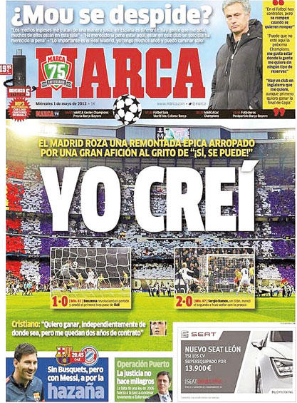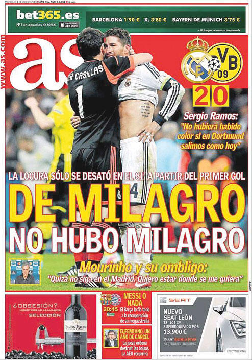 أثنت الصحافة الألمانية على فريق بروسيا دورتموند بعد بلوغه نهائي دوري أبطال أوروبا على حساب ريال مدريد، وفي الوقت نفسه وصفت الفريق الإسباني بأنه لامس المعجزه دون أن يحققها.