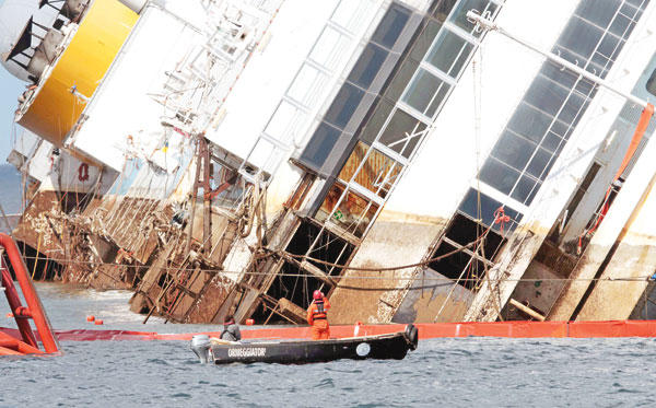 وبعد تأخير استمر ثلاث ساعات نتيجة لعاصفة ليلية عطلت الترتيبات النهائية بدأت فرق الإنقاذ العمل. وعلى خلاف الحادث الذي تضافر في وقوعه سوء الحظ وسوء الإدارة، وهو ما جعل قبطان السفينة فرانسيسكو شيتينو يواجه عدة اتهامات، لاتزال عملية الإنقاذ في مراحلها الأولى تسير غاية في التنسيق الهندسي.(رويترز)