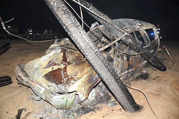 وفي المعلومات أن بلاغا ورد إلى غرفة العمليات عند الساعة 2.50 فجر أمس عن انقلاب وحريق وتصادم مركبة نوع جيب "جي. إم. سي" بعمود الضغط العالي للكهرباء بمنطقة كبد خط الأرتال، وان أشخاصا محشورون في الحافلة، فهرع رجال مركز إطفاء كبد إلى مكان الحادث.