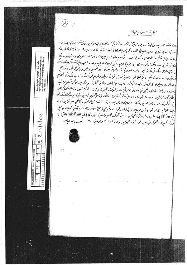 وثيقة لها تاريخ :حسن بن عاشور يفيد الشيخ أحمد الجابر بمقتل النوخذة وإصابة شخصين بإطلاق نار عام 1933