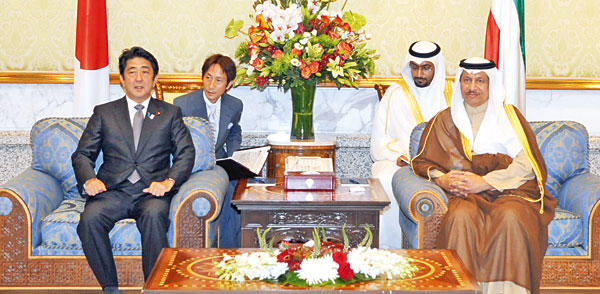 تنوعت مضامين مباحثات رئيس الوزراء الياباني في الكويت، وأعلنت الخارجية اليابانية أن اللقاءات تضمنت توثيق العلاقات على مختلف الصُّعُد، وأن أبرز مجالات التعاون الممكنة بين الكويت واليابان تشمل السلامة النووية والرعاية الصحية والزراعة والتعليم والعلوم والتنمية.استقبل سمو نائب الأمير وولي العهد الشيخ نواف الأحمد بقصر بيان صباح أمس بحضور رئيس مجلس الوزراء سمو الشيخ جابر المبارك رئيس وزراء اليابان شينزو آبي والوفد المرافق له، وذلك بمناسبة زيارته الرسمية للبلاد.وتم خلال اللقاء بحث العلاقات الثنائية المتميزة والمصالح المشتركة وسبل دعم أطر التعاون الثنائي بين البلدين في جميع المجالات بما يخدم مصالحهما المشتركة، كما تم بحث آخر المستجدات والقضايا على الساحتين الإقليمية والدولية.وكان رئيس مجلس وزراء اليابان شينزو آبي وصل والوفد المرافق له الى البلاد في زيارة رسمية تستمر يومين بدعوة من رئيس مجلس الوزراء سمو الشيخ جابر المبارك.وجرت للضيف مراسم استقبال رسمية في قصر بيان، عُزف خلالها السلامان الوطني الياباني والوطني الكويتي.وتفقد سمو رئيس مجلس الوزراء ورئيس وزراء اليابان حرس الشرف الذي اصطف لتحيتهما.عقب ذلك صافح الرئيس الضيف كبار مستقبليه نائب رئيس مجلس الوزراء وزير الخارجية الشيخ صباح الخالد، ونائب رئيس مجلس الوزراء وزير الداخلية الشيخ محمد الخالد، ونائب رئيس مجلس الوزراء وزير المالية الشيخ سالم العبدالعزيز، ونائب رئيس مجلس الوزراء وزير الدفاع الفريق متقاعد الشيخ خالد الجراح، ورئيس بعثة الشرف المرافقة المستشار بديوان سمو رئيس مجلس الوزراء فيصل الحجي، وعدد من الشيوخ والوزراء وكبار قادة الجيش والشرطة والحرس الوطني، وعميد السلك الدبلوماسي سفير جمهورية السنغال لدى الكويت، وكبار المسؤولين بالدولة وديوان سمو رئيس مجلس الوزراء، وسفير دولة الكويت لدى اليابان عبدالرحمن العتيبي.وأجرى المبارك وضيفه محادثات تناولت العلاقات بين البلدين وسبل تنميتها في مختلف المجالات بالاضافة الى تطورات الاوضاع في المنطقة والعالم.وقام رئيس مجلس وزراء اليابان بزيارة لدار الآثار الاسلامية ضمن زيارته الرسمية للكويت.وكان في استقبال الضيف لدى وصوله المشرف العام للدار الشيخة حصة الصباح، التي رافقته في جولة على أرجاء المعارض، وقدمت شرحا تاريخيا للضيف عن بعض التحف والمعروضات التي تحتضنها الدار. مؤتمر يابانيكشفت السكرتيرة الاعلامية للخارجية اليابانية كوني ساتو ان زيارة رئيس وزراء بلادها شينزو آبي الى الكويت تهدف إلى توثيق العلاقات وتعزيز التعاون المشترك بين البلدين على الصُّعُد السياسية والاقتصادية والتعليمية والصحية والزراعية.وقالت ساتو في مؤتمر صحافي امس، إن مجالات التعاون الممكنة بين الكويت واليابان تشمل السلامة النووية والرعاية الصحية والزراعة والتعليم والعلوم والتكنولوجيا وتنمية الموارد البشرية الى جانب مشاركة اليابان في برامج التنمية الوطنية الضخمة في الكويت.وأضافت ان الزيارة جاءت لتعزيز الحوار والتعاون الثنائي بين البلدين في المجالات السياسية والامنية من جهة وتعزيز صادرات اليابان من المنتجات الزراعية وتقنيات البنية التحتية إلى الكويت من جهة اخرى، الى جانب مطالبة الكويت بمواصلة توفير إمدادات مستقرة من الطاقة لليابان.تبرع نفطيوأشارت ساتو إلى ان الجانبين بحثا زيادة أعداد الطلبة الكويتيين في اليابان عن عددهم الحالي البالغ ستة طلاب، مبينة ان الكويت تدعم اليابان دعما غير محدود بما في ذلك التبرع بخمسة ملايين برميل نفطي من النفط الخام من خلال مبادرة سمو أمير البلاد، فضلاً عن تبرع إضافي في العام الماضي لترميم حوض أسماك محافظة فوكوشيما، للصليب الأحمر الياباني، يعد محل تقدير كبير من قبل الحكومة اليابانية والشعب الياباني.وعن أهم نقاط الزيارة، قالت ان زيارة رئيس وزراء بلادها للكويت ولقائه كبار المسؤولين، جاءت لتوثيق العلاقات وتعزيز التعاون المشترك بين البلدي