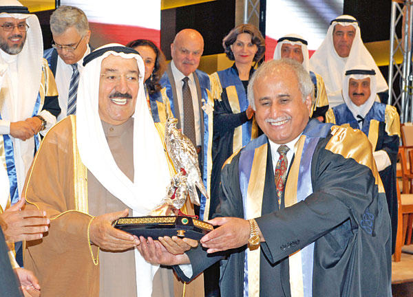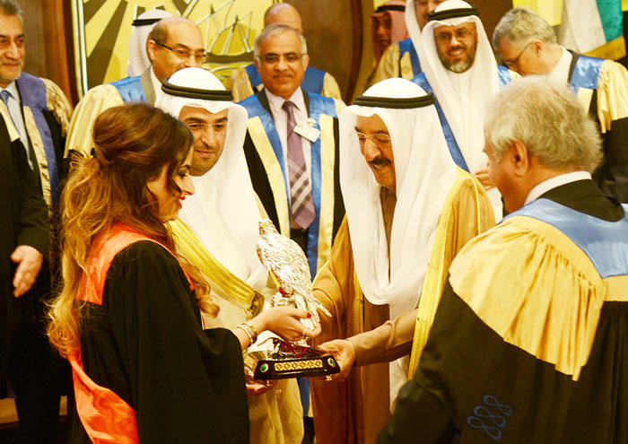 في حفل رعاه وحضره صاحب السمو أمير البلاد الشيخ صباح الأحمد، تم تكريم أوائل خريجي الدفعة الثانية والأربعين للعام الجامعي 2011/2012 صباح أمس، على مسرح الشيخ عبدالله الجابر بالحرم الجامعي بالشويخ.