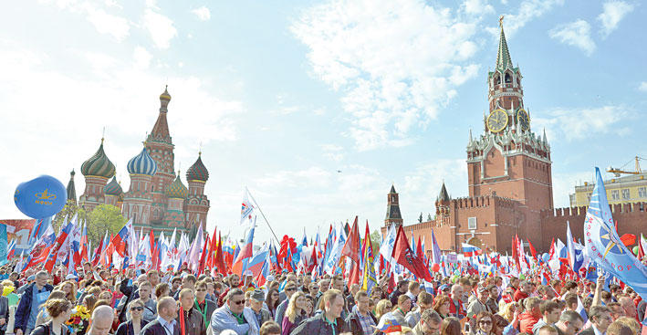 نزل الملايين أمس الى الشوارع بمناسبة عيد العمال في مختلف أنحاء العالم في مسيرات وتظاهرات، طالب خلالها بعض العمال بتحسين أوضاعهم ونيل مزيد من الحقوق، في حين تحول العيد بالنسبة الى البعض الآخر لمناسبة سياسية، إما لمعارضة السلطة القائمة كما في تركيا أو لتأييدها كما جرى في موسكو التي بدا أمس انها استعادت بعض التقاليد السوفياتية، حيث كان يعتبر 1 مايو أهم عيد في الاتحاد السوفياتي.وفي العاصمة الروسية، وللمرة الاولى منذ 1991، تظاهر نحو مئة ألف شخص في "الساحة الحمراء"، بمناسبة عيد العمال، وسط موجة من المشاعر الوطنية والقومية. وحمل المتظاهرون عددا من اللافتات المؤيدة للرئيس الروسي فلاديمير بوتين وسياساته القومية.