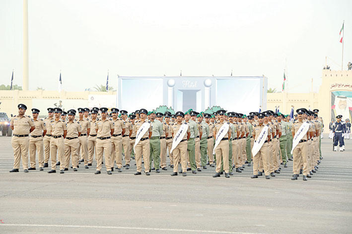 وفي مستهل كلمته نقل الخالد تحيات سمو أمير البلاد الشيخ صباح الأحمد وسمو ولي العهد الشيخ نواف الأحمد الى الخريجين، مبيناً أن «سعادتي لا توصف وأنا اشهد حفلا مميزا يختتم بالتحاق كوكبة من ابناء هذا الوطن بالسلك الأمني». ودعا وزير الداخلية أن يوفق الله تعالى الخريجين عندما ينضمون إلى إخوانهم لخدمة البلاد، مثمناً حرص أسرهم على التحاقهم بجهاز الشرطة خدمة للوطن.وكان الخالد وصل إلى مقر أكاديمية سعد العبدالله للعلوم الأمنية حيث أقيم حفل التخرج، وكان في مقدمة مستقبليه الوكلاء المساعدون ومديرو العموم وعدد من القيادات الأمنية. من جهته، ألقى مدير معهد ضباط الصف بالإدارة العامة لتأهيل ضباط الصف والأفراد العقيد بدر البالول كلمة رحب فيها بالخالد ووكيل وزارة الداخلية سلمان الفهد، مؤكدا أن هذا المعهد مصنع للرجال، حيث أثبت الواقع الأمني أن خريجيه هم الساعد الأيمن لقوة الشرطة في كل التخصصات وفي المهام الصعبة.واعتبر البالول أن حضور الخالد حفل التكريم من شأنه ان يزيد عزم الخريجين ويجعلهم على قدر المسؤولية الملقاة على عاتقهم، مضيفاً أن «الوطنية كلمة غالية لها وقع في قلوبنا، وأن الكويت كانت وما تزال بيتنا الكبير وأن الأوطان لا تبنى الا بسواعد أبنائها».وفي ختام الحفل تلا المقدم عبدالعزيز المطيري القرار الوزاري بتعيين الخريجين الجدد، ثم تم توزيع الشهادات على أوائل الخريجين.وتخلل الحفل عروض قتالية لقوة حراسة الشخصيات، لاقت استحساناً من الحضور، كما قدمت على هامشه عروض للرماية التكتيكية من أوضاع مختلفة والرماية باستخدام السيارات، بالإضافة الى عرض آخر للقوات الخاصة عن تجربة وهمية لمواجهة جرائم خطف الشخصيات المهمة والإرهاب.
