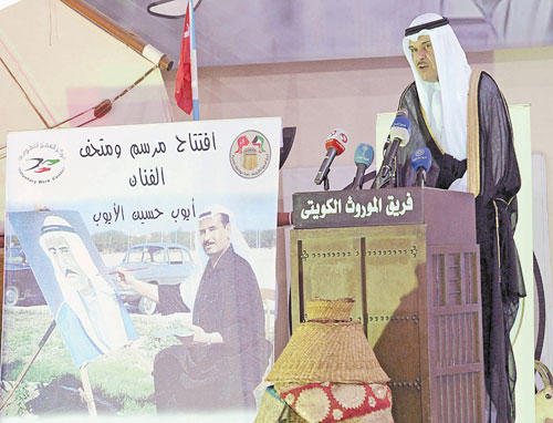 توظيف العناصر الفنيةوبهذه المناسبة التي ينظمها فريق الموروث الكويتي التابع لمركز الكويت التطوعي، قال الحمود:» نتذكر بكل العرفان والتقدير المسيرة الفنية لرائد من رواد الحركة التشكيلية في الكويت وأحد أصحاب الفضل والسبق في تطويرها وتقدمها»، مشيرا الى عمق فهم الفنان الراحل الأيوب للفن التشكيلي، وهو الذي قدم أجمل اللوحات التي تشف عن قدرات المبدع الحقيقي في استخدام الألوان وتوظيف العناصر الفنية واللجوء الى عالم الرمز والاسطورة وتوثيق مراحل مهمة من تاريخ الكويت.واضاف ان هدف الجناح هو إلقاء الضوء على جانب من مسيرة الفنان الفنية «ليس فقط تكريما لإنجازاته التي ملأت الوجدان الكويتي والخليجي والعربي بل لإثارة انتباه شبابنا الى هامات انسانية رفيعة عملت طوال عمرها لخدمة وطنها الكويت وإثراء فنه».إنجازاتوأشار الشيخ سلمان الى تقديم الفنان القدير الراحل الأيوب العديد من الانجازات التي ساهمت في انطلاق الحركة التشكيلية ووضعها على مسارها الصحيح والمرموق «وجعلها تدهش وتذهل كثيرين من متابعيها الذين أشادوا بما كانت عليه من تطور وإبهار حتى استطاعت ان تسبق زمنها».الهندسية المعماريةمن جانبها، أكدت رئيسة مركز الكويت للعمل التطوعي الشيخة أمثال الأحمد دور الفنان الراحل في توثيق حقب وأمور ثقافية واجتماعية للشعب الكويتي حتى أصبحت أعماله وفنه مرجعا للهندسة المعمارية الكويتية القديمة والأنشطة الاجتماعية والملابس الكويتية التراثية والشعبية.واشادت بعائلة الفنان على تعاونهم لتحقيق وانشاء الجناح الذي يحتوي على العديد من مقتنيات وأعمال الفنان الراحل وبأدق التفاصيل داعية الجميع وخصوصا الشباب والطلبة لمعاينة أعمال وحياة «هذا المعلم الكبير الذي يعتبر أحد أعمدة الحفاظ على تاريخ وتراث الكويت». دوره التربويبدوره، أشار وزير التربية وزير التعليم العالي الدكتور أحمد المليفي الى دور الفنان الراحل التربوي خلال أكثر من 30 عاما كان فيها مدرسا وناظرا بعد تخرجه من أول مدرسة نظامية في الكويت- المدرسة المباركية عام 1949.واضاف ان الراحل «كان مثالا في الاخلاق والتفاني في عمله ولايزال كثير من أبنائه ممن تخرجوا على يديه يتذكرون مناقبه الطيبة وخلقه العالي».وذكر الدكتور المليفي فترة تفرغ الأيوب في المحافظة على تراث الكويت وماضيه الجميل بعد تقاعده عام 1979 والذي «سطر ذلك التراث بأسلوب يثير الحنين والشوق والتلهف للتعرف الى طريق الحياة واساليب عاشها الآباء والأجداد من مهن وحرف وعادات ومناسبات».واشار ايضا الى اهتمام الأيوب باللهجة الكويتية وتفسير معانيها ومفرداتها وتوثيق التعليم في الماضي فتحدث عن منهجيته واسلوبه وطرقه وأداته، ذاكرا عددا من مؤلفات المرحوم مثل «مع الأطفال في الماضي» و «مع ذكرياتنا الكويتية» و«مختارات شعبية من اللهجة الكويتية» و«من كلمات أهل الديرة» والعديد غيرها.تاريخ الكويتمن جانبه، أشاد الفنان سامي محمد في كلمة مماثلة باحتضان متحف بيت العثمان لجناح الفنان القدير وما يمثله من ثروات وطنية لتكون ضمن مقتنيات المتحف الذي يسطر تاريخ الكويت المجيد، موضحا ان هذا الاهتمام يؤكد حرص دولة الكويت على فنانيها وأدبائها ومثقفيها.وأضاف ان الفنان الأيوب سطر وسجل بفرشاته تاريخ الكويت بصريا بأجمل اللوحات التي تنعش ذاكرة المتلقي و«ليشتم فيها عبق الماضي ورائحة الطين ويتذكر الألعاب والموروث الشعبي الأصيل الذي نفخر به».مقتنياتمن جانبها، أثنت ابنة الراحل هناء أيوب على الاهتمام البالغ الذي أظهره فريق الموروث الكويتي ورئيسه أنور الرفاعي لاحتضان مقتنيات المرحوم التي كانت موجودة في منزله مؤكدة ان العديد من المقتنيات تم نقلها بحرص وخصوصا مرسمه الذي يحتوي على آخر لوحة بدأها ولم ينته منها.وعبرت عن فخرها بأن يكون «مرجعا تاريخيا وتراثيا كويتيا تعود له الأجيال الحاضرة للتعرف على ماضيها وحياة أجدادها».يذكر ان الفنان أيوب حسين الأيوب القناعي الذي وافته المنية في نوفمبر 2013 من مواليد عام 1932 وتخرج
