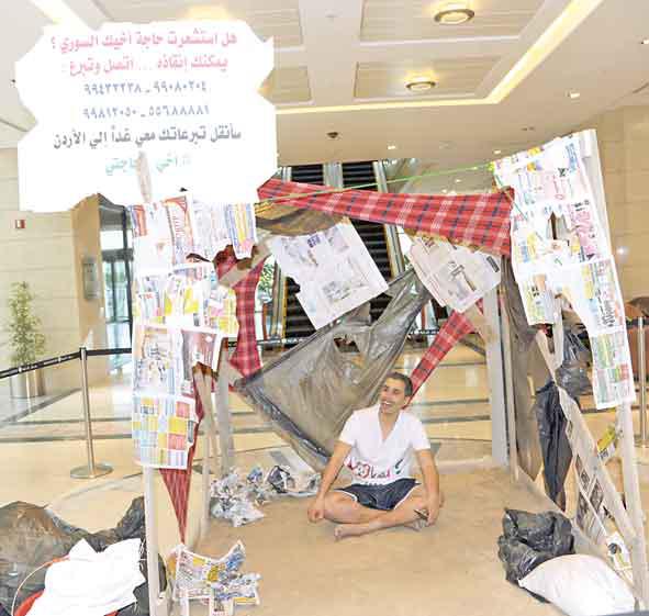 وقدّم الهاجري رسالة إنسانية من خلال فكرة المشي حافي القدمين، متجرعاً مرارة برودة الطقس التي لا تعادل شيئاً أمام ما يعانيه الشعب السوري، مفضلاً أن تكون أولى خطواته من شارع دمشق وتحديداً بالقرب من منطقة قرطبة إلى مجمع الراية، مجسداً صورة رمزية تحمل في طياتها الكثير من المعاني. وضمن هذا الإطار، أكد شعيب الهاجري أنه يهدف من تنفيذ هذه الفكرة إلى الحصول على التبرعات للشعب السوري لما يعانيه من عوز وبرد وحاجة ماسة لمستلزمات المعيشة سواء في سورية أو خارجها في مخيمات اللاجئين، وتحقق ذلك من خلال لفت انتباه الناس أثناء المشي.وبشأن رحلة شباب الخير، أوضح الهاجري أنها "بدأت منذ فترة لدعم الشعب السوري إذ قمنا بإيواء الكثيرين عن طريق بناء المخيمات في داخل سورية وخارجها، وسنغادر اليوم إلى مخيم الزعتري في المملكة الأردنية الهاشمية لمد يد العون لأشقائنا السوريين".وأضاف: "قررت الامتناع عن الطعام والشراب في آخر أيام الحملة مشاركة لأشقائنا السوريين"، مثمناً دور المسؤولين في مجمع الراية للسماح له ببناء خيمة لجمع التبرعات.