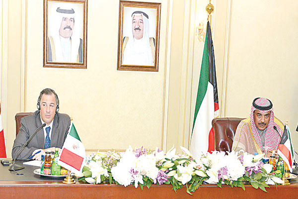 أعرب النائب الأول لرئيس مجلس الوزراء وزير الخارجية الشيخ صباح الخالد عن بالغ ترحيبه بنظيره المكسيكي خوسيه انتونيو كوريبرينيا، مشيرا إلى لقائهما سمو نائب الأمير ولي العهد الشيخ نواف الأحمد حيث نقل سموه تحياته للرئيس المكسيكي إضافة الى لقائهما بسمو رئيس مجلس الوزراء الشيخ جابر المبارك.وقال الخالد في مؤتمر صحافي عقده امس على هامش زيارة الوزير المكسيكي للبلاد: "أجرينا مباحثات ثنائية تناولت مختلف المواضيع السياسية والاقتصادية والاستثمارية والثقافية التي تسهم في تنمية العلاقات الثنائية، بالاضافة إلى القضايا محل الاهتمام المشترك، لاسيما الوضع في سورية والملف الفلسطيني والتطورات الجارية في عملية السلام في الشرق الأوسط، مؤكدا حرص البلدين على دعم الجهود الدولية لاستتباب الأمن في الشرق الأوسط والعالم، كما بحثنا سبل توطيد العلاقات الخليجية مع المكسيك من جهة ومع دول اميركا الوسطى واللاتينية من خلال الاتفاقيات وتكثيف الزيارات المتبادلة على كل المستويات".مكانة عالميةوقال الخالد ان المكسيك بلد مهم ويحظى بمكانة عالمية مرموقة سواء في المجال السياسي او الاقتصادي، مشيرا الى ما تتمتع به المكسيك من حضارة عريقة لها مخزون ثقافي وبشري في العالم ما جعلها وجهة سياحية رئيسية في العالم، كما يتبوأ اقتصادها المرتبة الـ 14 عالميا بالاضافة الى عضويتها الفعالة في العديد من المنظمات الدولية والمؤسسات والتكتلات والمجاميع الإقليمية، كعضويتها في اتفاقية التجارة الحرة لأميركا الشمالية، ومجموعة العشرين وتحالف الباسيفيك الذي نسعى الى تعميق علاقتنا به في كل المستويات.وفي رده على سؤال صحافي عن الوساطة بين مصر وقطر والشرطة الخليجية، قال الخالد إن الكويت مقبلة على قمة في 25 و26 مارس الجاري وما يهم الكويت هو تهيئة كل الأجواء لانعقاد قمة عربية تيسر لها كل فرص النجاح، مضيفا: "سنقوم بما هو مطلوب منا في رئاسة دول مجلس التعاون لهذه الدورة والرئاسة المقبلة للقمة العربية فجهد الكويت ينصب لتهدئة الامور لعقد قمة عربية ناجحة".وقال: "اما فيما يتعلق بموضوع الشرطة الخليجية التي تم اعتمادها في قمة الكويت في ديسمبر الماضي ووزراء الداخلية لدول مجلس التعاون سيضعونها موضع التنفيذ في اجتماعهم المقبل".أحداث أوكرانياوعن موقف الكويت تجاه احداث اوكرانيا وماذا عن الملفات التي ستطرح على الاجتماع الوزاري الخليجي غدا؟ وهل هناك امل بإقرار الاتفاقية الامنية الخليجية؟ قال الخالد: "نتابع باهتمام ما يحدث هناك والكويت تسعى وتحرص وتحث على الالتزام بالقانون الدولي والسعي لحل سياسي للنزاعات من خلال الحوار والمفاوضات".وبشأن الاتفاقية الأمنية الخليجية، قال: "نحن كحكومة نلتزم بما ورد في الدستور وهناك اجراءات دستورية يجب ان تتم لدخول اي اتفاقية حيز التنفيذ فنحن كحكومة نلتزم بما هو مطلوب منا وبموجب الدستور فإن مجلس الامة لديه الوقت الكافي لدراسة الأمر ورفعه الى مجلس الوزراء، وقد يرى عرض الموضوع على لجنة او لجنتين وهذا عمل برلماني يقرره اعضاء مجلس الامة، ونحن سنكون حاضرين وفاعلين لتلبية دعوة أي من لجان المجلس لنقاش الاتفاقية".وعن الوساطة الكويتية بين ايران والسعودية، وما اذا كنا سنشهد لقاء قريبا بين الجانبين برعاية كويتية، قال الخالد "بعد انتخاب الرئيس حسن روحاني واعطى اشارات إيجابية تجاه دول المنطقة وبشكل خاص مع السعودية وانفتاحه على دول العالم، وكانت هناك اشارات ايجابية من المملكة السعودية ردا على اشارات روحاني"، مشيرا الى ان دول الخليج وايران والعراق بينها تفاهم اكبر بالمرحلة المقبلة، داعيا الى ان يكون هناك سعي لامن واستقرار المنطقة "فكلنا شركاء في هذه المنطقة ومصالحنا كثيرة في ان يكون هناك تعاون وتفاهم حول كثير من القضايا".الدول الست وأضاف: "نحن نتابع الاتفاق المؤقت بين ايران والدول الست الكبرى ونأمل أن يتم التوصل الى اتفاق نهائي يجعل المنطقة اخف توترا مما كانت وكل الامور تصب في صالح تهدئة التوتر في المنطق