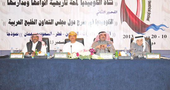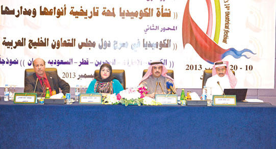 على مدى يومين متتاليين، عقدت الندوة الفكرية لمهرجان الكويت المسرحي الرابع عشر، بواقع أربع جلسات، حول «الكوميديا والمسرح في مجلس التعاون لدول الخليج العربية» وبنماذج للدول الأعضاء الست.في جلسة اليوم الأول تطرق الباحث المسرحي د. نادر القنة إلى تاريخ الكوميديا المسرحية وأنواعها ومدارسها، وفي الجلسة الثانية، تناول الناقد د. محمد مبارك بلال مسيرة المسرح الكوميدي في الكويت، وأبرز نجومه والظروف السياسية والاجتماعية التي استطاعوا ترجمتها وتجسيدها على خشبة المسرح.