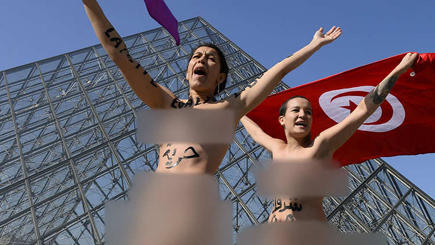عربيات وإيرانيات يتظاهران عاريات أمام متحف "اللوفر" بباريس
