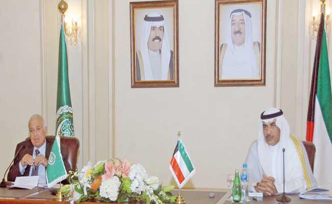 وعن الشأن الفلسطيني وأحداث غزة، قال إنه "تم استعراض مجمل القضايا الراهنة التي تشهدها منطقتنا العربية في الوقت الحالي، وأبرزها العدوان الإسرائيلي الوحشي على قطاع غزة"، مشيداً "بجهود الأمين العام للوصول إلى اتفاق ينهي معاناة الشعب الفلسطيني".وجدد الخالد تأييد الكويت لمساعيه والجهود التي تقوم بها مصر والمتمثلة في المبادرة المصرية الهادفة إلى وقف الهجمات العسكرية الإسرائيلية على قطاع غزة وإقرار التهدئة التامة.وحول الموقف الخليجي تجاه رئيس الوزراء العراقي الجديد، أكد أن "دول التعاون حريصة على أن ترى العراق ينعم بالأمن والاستقرار، وأن يكون الشعب العراقي ممثلاً بمؤسساته الدستورية هو مَن يضع كل ما يتعلق بالوضع هناك نصب عينه". وأضاف أن "الدول الخليجية تؤيد المسيرة السياسية في العراق وفق دستور البلاد، وهذا ما أكدته دول مجلس التعاون، والمؤسسات الدستورية العراقية واختيار الرئاسات الثلاث الجمهورية والبرلمان ورئيس الحكومة".بدوره، قال الأمين العام لجامعة الدول العربية نبيل العربي إن "ما يحدث الآن في غزة هو هجوم غاشم وشرس ينال المدنيين، ويدمر القطاع والشعب الفلسطيني الذي يعاني معاناة كبيرة"، لافتاً إلى أن "ما يجري في القاهرة لإنهاء هذا القتال مهم، لكن كل هذا يمس القشرة الخارجية، بينما الموضوع الرئيسي هو إنهاء استمرار احتلال غزة".وشدد العربي على أن "طلبات الجانب الفلسطيني التي ترفضها إسرائيل حالياً، سبق أن وافقت عليها بشكل مكتوب، سواء في ما يتعلق بفتح الميناء أو المطار أو غير ذلك"، مشيراً إلى أن "المتحدث الإسرائيلي يقول إن كل ما تقوم به إسرائيل هو رد فعل على الصواريخ الآتية من غزة، لكن المشكلة تتمثل في الاحتلال الإسرائيلي".وعن الشأن العراقي، قال إن "ما يحدث الآن في العراق مهم، لأن رئيس الجمهورية سمى رئيس الحكومة، ونتمنى تشكيل حكومة تساعد على التفاهم بين جميع العراقيين"، مضيفاً: "تباحثنا مع الشيخ الخالد حول خطوات سنقوم بها للتواصل مع بغداد في هذه المرحلة، ولن يتم الكشف عنها حالياً".وحول الملف السوري، أوضح العربي أن "القتال في سورية لا يزال مستمراً، وكذلك معاناة 6 ملايين نازح داخلها، و3 ملايين خارجها"، لافتاً إلى أن "الأمم المتحدة وضعت تصوراً عاماً لإنشاء هيئة حكومية انتقالية، وتم بحث هذا الموضوع، لكن لا جديد حتى الآن".