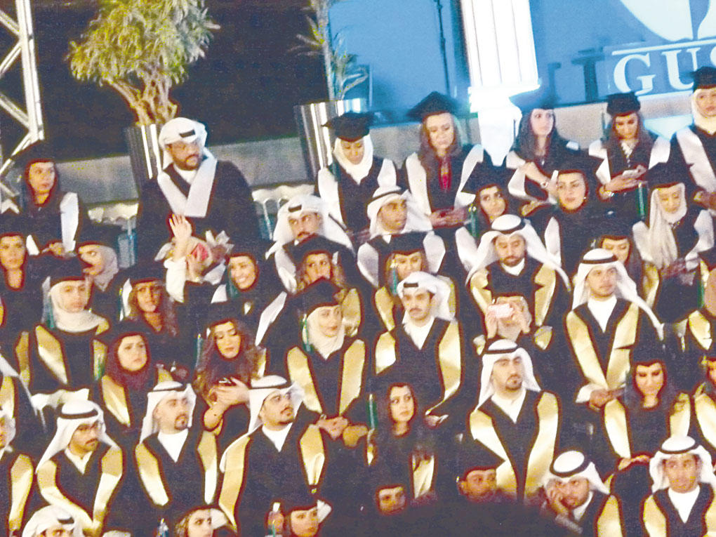 شمل وزير التربية وزير التعليم العالي د. نايف الحجرف حفل تخريج طلبة جامعة الخليج للعلوم والتكنولوجيا للدفعة الثامنة من طلبة البكالوريوس والدفعة الرابعة من طلبة الماجستير حيث بلغ عددهم 714 طالبا وطالبة. وفي هذا الصدد، أكد د. نايف الحجرف أن هذه المناسبة "مدعاة للفخر والاعتزاز، حيث إننا نحتفل جميعا اليوم كأولياء أمور وطلاب وجامعة والكويت بهذه الكوكبة التي تتخرج وقد نهلت من صروح العلم والمعرفة لتكون رافدا يبني وطنا يستحق من الجميع العمل الدؤوب والمستمر لإعلاء رايته". وأشاد الحجرف بدور القطاع الخاص بمساهمته الفاعلة في المنظومة التعليمية ومنظومة التعليم العالي تحديدا "ليكون قيمة مضافة تساهم وتدعم الجهود الحكومية في توفير الدعم ومؤسسات التعليم العالي التي تتمتع بجودة من التعليم وتحاكي متطلبات سوق العمل". وأشار إلى أن تضافر الجهود الحكومية مع القطاع الخاص هو ما يضمن جودة المخرجات، لافتا إلى "أهمية دور الجهاز الوطني للاعتماد الاكاديمي بالتعاون مع مؤسسات التعليم العالي بشقيها الحكومي والخاص، لضمان جودة عالية في مخرجات مؤسسات التعليم العالي لتكون بالفعل القيمة المضافة التي تقدمها الجامعات لسوق العمل". من جانبه، أوضح رئيس مجلس الأمناء في جامعة الخليج د. عبدالرحمن المحيلان "أنه منذ تأسست الجامعة في عام 2002 تخرج فيها نحو 3000 خريج يسهمون في مسيرة بناء مجالات العمل المختلفة، كما أثبتت الجامعة تميزها في مجال النشر العلمي، وما نشره أعضاء هيئة التدريس من أبحاث في دوريات علمية مرموقة، يعتبر رسميا الأعلى في المنطقة". وأشار إلى أن شراكة الجامعة مع جامعة ماسيشوتس لويال في طريقها لترى النور بفتح كلية الهندسة والعمارة، حيث يحصل الطالب الدارس فيها على شهادتين من الجامعتين. وأضاف المحيلان أن "الهدف من إنشاء جامعة الخليج هو أن يكون خريجونا مواطنين صالحين، مشاركين في التنمية البشرية وقادرين على التعامل مع المستجدات بعقل مفتوح وقيم راسخة". من جهته، أوضح الرئيس الجديد للجامعة دونالد بيتس في كلمة توجه بها للخريجين "ان حفل اليوم يعبر عن الدعم الذي تلقيتموه من عائلاتكم وأصدقائكم في تحقيق نجاحكم، وإن حفل التخرج هو بداية لتجربة جديدة وحياة جديدة بعد تلقيكم الكثير من العلم والتوجيهات على مدى السنوات الماضية". وأضاف بيتس أن التغيير هو الثابت الوحيد في هذه الحياة، وإن إدارك هذا التغيير والاستجابة له هو المرحلة الأصعب، وهذا ينطبق على تخصصاتكم، فعليكم مواكبة كل ما هو جديد بالقراءة والدراسة".