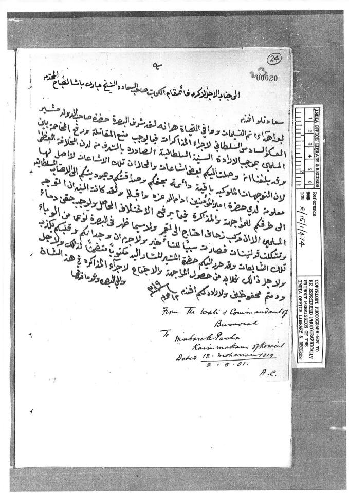 وثيقة لها تاريخ : معلومات سرية تشير إلى استعداد عثماني للهجوم على الكويت عام 1902