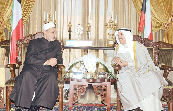 استقبل سمو أمير البلاد الشيخ صباح الأحمد بقصر بيان صباح أمس، سمو الشيخ ناصر المحمد، ثم النائب الأول لرئيس مجلس الوزراء وزير الخارجية الشيخ صباح الخالد.وأقام صاحب السمو بدار سلوى ظهر أمس، بحضور سمو ولي العهد الشيخ نواف الأحمد، مأدبة غداء على شرف الإمام الأكبر شيخ الأزهر الشريف الدكتور أحمد الطيب والوفد المرافق، وذلك بمناسبة زيارته الرسمية للبلاد.وفي مجال آخر، بعث سمو الأمير ببرقية تهنئة إلى رئيس جمهورية غامبيا الدكتور يحيى جامع، عبّر فيها سموه عن خالص تهانيه بمناسبة العيد الوطني لبلاده، متمنياً له موفور الصحة والعافية، وللبلد الصديق دوام التقدم والازدهار.وبعث سمو ولي العهد، ورئيس مجلس الوزراء سمو الشيخ جابر المبارك ببرقيتي تهنئة مماثلتين.من جانبه، قام شيخ الأزهر الشريف الدكتور أحمد الطيب والوفد المرافق ظهر امس بزيارة لبيت الزكاة وكان في استقباله وزير العدل وزير الاوقاف والشؤون الاسلامية الدكتور نايف العجمي ومدير عام بيت الزكاة إبراهيم الصالح. وألقى العجمي كلمة رحب في مستهلها بالطيب والوفد الذي يزور الكويت بدعوة سامية وشكر لهم حرصهم على زيارة بيت الزكاة للاطلاع على تجربته في خدمة فريضة الزكاة والعمل الخيري والإنساني.وقال: "نعتز كثيرا بهذه الزيارة ونود أن نشيد بالدور الكبير والمتميز الذي يؤديه الأزهر الشريف تجاه القضايا الاسلامية واسهاماته الكبيرة في بناء الفكر المعاصر"، مضيفا ان "الأزهر الشريف صرح شامخ ومنارة علم يتميز بالوسطية والاعتدال في الفكر والثقافة وتفيء إليه جماهير المسلمين وتقتبس من أنواره وعمله واحتضانه لطلبة العلم من جميع الجنسيات للدراسة بجامعاته ومؤسساته التعليمية والذي يسهم في تخريج كوكبة من العلماء الأجلاء الذين يحملون مشاعل النور وينشرون كلام الله ودعوة السلام التي أمر بها الرسول صلى الله عليه وسلم".واعتبر العجمي ان إنشاء بيت الزكاة كان حاجة مجتمعية ومطلبا شعبيا حظي بمباركة الدولة وتقوم رسالته على جمع وتنمية موارد الزكاة والخيرات وإنفاقها محليا وخارجيا في مصارفها الشرعية بأعلى مستوى من الكفاءة والتميز.كما يقوم بتقديم خدماته للمستحقين بما يتوافق مع الاحتياجات التنموية للمجتمع عبر تبني أنظمة مالية وإدارية تتوافق مع أحكام الشريعة الإسلامية ومعايير الجودة والحكومية المؤسسية.وختم كلمته مبديا استعداد البيت نقل كافة أوجه الدعم والمساندة في مجال العمل الزكوي والخيري لما فيه خير ابناء الأمة الاسلامية, آملا ان يدوم التواصل والتعاون بين مصر والكويت.ثم ألقى شيخ الازهر الشريف كلمة شكر فيها سمو الأمير وشعب الكويت على حسن الاستقبال والضيافة. وقال: "حرصنا على ان نزور بيت الزكاة المؤسسة الاسلامية العريقة التي هي فعلا من باب التعاون على البر والتقوى، ولمست بنفسي أثر هذه المؤسسة التي كانت تساهم في افتتاح المعاهد والمساجد بربوع مصر وكذلك رعاية الطلاب الفقراء المتميزين والوافدين من خارج مصر وأيضا الطلاب المصريين وتبنيهم منذ السنة الدراسية الأولى إلى أن يحصلوا على الدكتوراه، وحرصنا على ان نرى هذه التجربة وفي ذهننا ان ننقلها الى مصر ان شاء الله بالتعاون معكم نأمل عندما نرجع أن نكون كونا فكرة كاملة وشاملة وكافية لنبدأ بهذا المشروع في القاهرة".وكان الطيب استقبل صباح امس الأمين العام للامانة العامة للأوقاف الدكتور عبدالمحسن الخرافي وأعضاء الأمانة وذلك في مقر إقامته بقصر بيان.