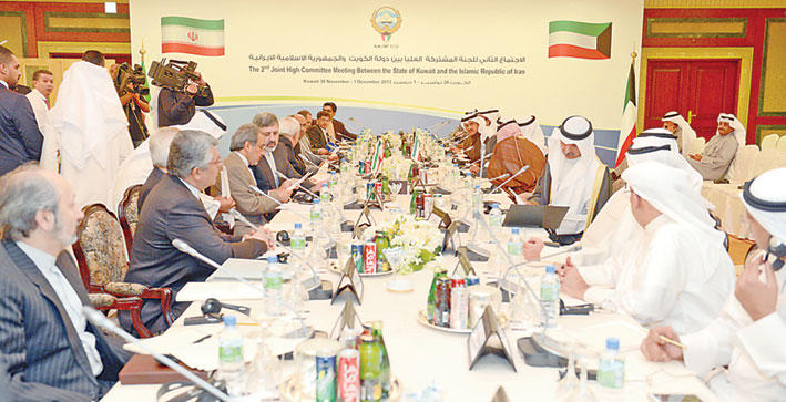 عقدت أمس أعمال الدورة الثانية للجنة العليا المشتركة بين دولة الكويت والجمهورية الإسلامية الإيرانية، حيث ترأس الجانب الكويتي رئيس مجلس الوزراء بالإنابة وزير الخارجية الشيخ صباح الخالد، بينما ترأس الجانب الإيراني وزير الخارجية الإيراني محمد جواد ظريف.وتم خلال أعمال الدورة إجراء المباحثات الرسمية المشتركة، واستعراض مجمل أوجه التعاون بين كل القطاعات في البلدين.