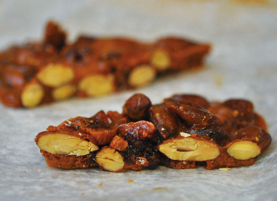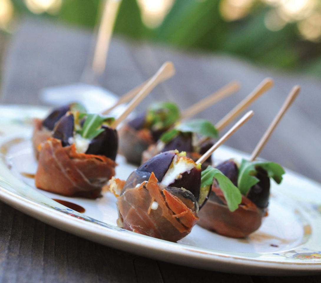 الحصص: 12 قطعةالمقادير- 12 حبة تين سوداء وناضجة.- ربع كوب من الجبنة الزرقاء.- 12 شريحة رفيعة من اللحم المقدد.- 12 ورقة صغيرة من الجرجير (اختياري).- خل بلسمي (اختياري).الطريقة-1 انزعي جذوع التين بحذر ثم قطعي حبات التين إلى النصف بدءاً من طرف الجذع، لكن لا تلمسي الكعب. قطعيها مجدداً كما لو أردت الحصول على مكعبات، لكن لا تلمسي الكعب أيضاً.-2 اضغطي ملعقة كبيرة من الجبنة الزرقاء في وسط كل حبة تين، واحرصي على ألا تنفصل مكعبات التين.-3 غلفي كل حبة تين باللحم المقدد واحرصي على أن يغطي اللحم الأسفل كله وجميع الأطراف.-4 ضعي حبات التين في صينية مغطاة بورق الألمنيوم. اشويها على حرارة مرتفعة لدقيقتين تقريباً أو إلى أن تميل الجبنة إلى اللون البني.-5 زيني كل حبة تين بورقة جرجير. ضعيها في طبق واسكبي بضع قطرات من الخل البلسمي على كل حبة تين. قدمي الطبق فوراً.سندويتش بالتين وجبنة الماعزالحصص: 4 سندويتشاتالمقادير- ملعقتان كبيرتان من زيت الزيتون.- 3 حبات متوسطة من البصل الحلو والمقطع إلى شرائح رفيعة.- ملح بحر أو كوشير وفلفل مطحون وطازج.- 3 ملاعق كبيرة من الخل البلسمي.- 8 شرائح سميكة من خبز {سوردو}.- 3 قطع بوزن 439 غراماً من جبن الماعز، على حرارة الغرفة.- كوب من الجرجير.- 226 غراماً من التين الطازج والناضج، مع نزع الجذوع وتقطيعه إلى قطع رقيقة.الطريقة-1 في مقلاة كبيرة، سخني الزيت على حرارة متوسطة. أضيفي البصل وتبّليه بالملح والفلفل. غطي المقلاة واطبخي الخليط وحركيه من وقت إلى آخر إلى أن يصبح البصل طرياً، مدة 10 دقائق. -2 أزيلي الغطاء ودعي الخليط على النار إلى أن يصبح البصل بنياً مائلاً إلى الذهبي، بين 10 و12 دقيقة إضافية. أضيفي بعض الماء إذا صار محتوى المقلاة داكناً.-3 حين يصبح البصل طرياً ويميل لونه إلى البني الفاتح، أضيفي الخل البلسمي واطبخي الخليط لدقيقة إضافية.-4 ضعي الخبز تحت المشواة وحمصيه إلى أن يحمرّ على طرف واحد. اقلبيه وحمّصي الطرف الآخر.-5 قسمي جبن الماعز على أربع شرائح من الخبز ووزعيه بشكل متساو. قسمي البصل على شرائح الخبز الأربع ووزعيه بشكل متساو فوق جبن الماعز.قسمي الجرجير على شرائح الخبز الأربع وضعيه فوق البصل. وزعي قطع التين على شرائح الخبز وضعيها فوق الجرجير. ثم ضعي ما تبقى من شرائح الخبز.6. قطّعي السندويتشات إلى النصف وقدميها.حلوى بالتين واللوزالكمية: نصف كيلوالمقادير- 3 ملاعق كبيرة من الزبدة.- كوب وربع من اللوز المحمّص.- كوب من السكر.- ربع كوب من الماء.- نصف ملعقة صغيرة من صودا الخبز.- نصف كوب من التين المقطع.- ملح البحر.أداة خاصة: ميزان حرارة للحلويات.الطريقة-1 وزعي ورق الألمنيوم في صينية كبيرة. ادهنيها بالزبدة ثم ضعيها جانباً.-2 في مقلاة صغيرة، ذوبي ثلاث ملاعق كبيرة من الزبدة على حرارة متوسطة وأضيفي اللوز. اطبخي الخليط وحركيه باستمرار لدقيقتين تقريباً. انزعيه عن النار وضعيه جانباً.-3 في طنجرة صغيرة، سخني السكر والماء على حرارة مرتفعة وحركي الخليط باستمرار إلى أن يبدأ بالغليان.-4 خففي الحرارة إلى درجة متوسطة واغلي الخليط مدة 10 دقائق وحركيه من وقت إلى آخر لمنع احتراقه، إلى أن تصل حرارة الخليط إلى 290 درجة. انزعيه عن النار وأضيفي فوراً اللوز والتين وصودا الخبز وحركي الخليط كي يمتزج جيداً.-5 اسكبي الخليط فوراً في الصينية المحضَّرة ووزعي الخلطة فيها بشكل متساو. رشي قليلاً من ملح البحر. برّدي الحلوى بالكامل ثم قطعيها إلى 16 أو 20 قطعة.