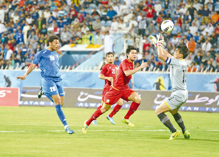 تأهل المنتخب الوطني لنهائيات بطولة كأس آسيا، المقرر إقامتها في أستراليا عام 2015، اثر تغلبه على منتخب تايلند بثلاثة أهداف مقابل هدف، في المباراة التي أقيمت بينهما مساء أمس على استاد الكويت، في الجولة الخامسة من منافسات المجموعة الثانية من التصفيات المؤهلة لنهائيات كأس آسيا.بهذه النتيجة ارتفع رصيد المنتخب إلى 9 نقاط ضمن بها احتلاله مركز الوصافة، ومن ثم حجز بطاقة التأهل الثانية، خلف المنتخب الإيراني الذي حجز البطاقة الأولى بفوزه على مضيفه اللبناني برباعية مقابل هدف، ليتربع على قمة المجموعة برصيد 13 نقطة، بينما تجمد رصيد لبنان عند 5 نقاط، وباتت الجولة الأخيرة التي ستقام في 5 مارس 2014 ويلتقي خلالها الأزرق مع إيران، ولبنان مع تايلند مجرد تحصيل حاصل.