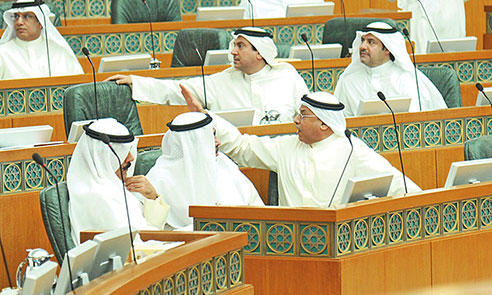 أعلن مجلس الامة في جلسته الخاصة امس، خلو 5 مقاعد نيابية إثر قبوله استقالات النواب رياض العدساني وعبدالكريم الكندري وحسين القويعان وعلي الراشد وصفاء الهاشم، تمثلت في مقعدين بالدائرة الانتخابية الثانية، ومقعدين بالدائرة الثالثة، ومقعد بالرابعة.وبينما تم تكليف مكتب المجلس بإصدار بيان للرد على اسباب الاستقالة التي اوردها النواب في طلباتهم، لما صاحبها من مساس بالمجلس ورئاسته وأعضائه، اكدت الحكومة في بيان لها القاه وزير الدولة لشؤون مجلس الوزراء وزير العدل بالتكليف الشيخ محمد العبدالله ان الحكومة تعاونت مع المجلس، وهي حريصة على تفعيل ادوات الرقابة وتصحيح المسار الدستوري، لافتا الى انها أجابت عن 80 في المئة من الاسئلة البرلمانية، وتعاملت مع 12 استجوابا قدمت لها خلال المجلس الحالي.ووافق المجلس على تقديم جلستي 27 و28 الشهر الجاري الى الاسبوع المقبل، مرجئا مناقشة تنويع مصادر الدخل القومي لاستيضاح سياسة الحكومة في شأنه وتبادل الرأي بصدده، على ان تخصص له ثلاث ساعات في الجلسة المقبلة.افتتح رئيس مجلس الامة مرزوق الغانم الجلسة الخاصة عند الساعة 11.30 بعد ان رفعها نصف ساعة لعدم اكتمال النصاب وتمت تلاوة الأسماء والمعتذرين.وقال الرئيس الغانم ان هذه الجلسة عقدت بناء على طلب النواب لمناقشة استقالات بعض الأعضاء ومناقشة سياسة الحكومة في تنويع مصادر الدخل، مضيفا: حاولت الاتصال بالاخوة المستقيلين وتمكنا بالاتصال بالنواب العدساني والكندري والراشد وصفاء ولم أتمكن من الاتصال بالقويعان وبعد جلسة الثلاثاء تحدثت معهم الا الاخ الراشد لم اتمكن من الاتصال به، وكل من اتصلت بهم متمسكون بالاستقالة".وبدوره قال النائب عادل الخرافي: اشكر الرئيس بالتكليف، واتصلت بالنائب القويعان واصر على الاستقالة ومصر على سرعة بتها.من جانبه، قال النائب حمدان العازمي ان المادة 77 من اللائحة نصت على ان ليس للرئيس الاشتراك في المناقشات الا اذا تخلى عن كرسيه، والرئيس خصم في الموضوع وهو أحد اسباب الاستقالة.وقال النائب فيصل الكندري ان الرئيس كان محايدا واعطاهم نقاط نظام واسباب الاستقالة غير صحيحة.من جانبه قال النائب يوسف الزلزلة ان المادة 77 واضحة وصريحة.وقال النائب عبدالحميد دشتي ان المادة 77 لا تتجزأ.وقال الغانم: المادة 77 واضحة، اذا هناك موضوع معين والرئيس يريد ان يبدي رأيه فيه فعليه ان يترجل عن المنصة، ولا يقصد بنص المادة الايضاح والتوضيح، ولكن وظيفته تنظيم العمل، وانا ادير الجلسة ورئيس منتخب من الاغلبية الساحقة.بدوره، قال النائب يعقوب الصانع ان "هذا المجلس اعاد الهيبة للقانون والسلطة القضائية وهذا مبعث فخر ولا وجود لاستخدام المواءمة السياسية والاجندات السياسية على حساب القانون"، واضاف: "هل من المعقول احالة كل استجواب الى المحكمة الدستورية؟ قرار انشاء المحكمة الدستورية اكد انها خاصة بالنظر في دستورية المواد"، مشيرا إلى أنه "لو ذهبنا الى المحكمة الدستورية لتفسير مواد الاستجواب فسوف ترد علينا ان هناك تفسيرا خرج عن المحكمة".واضاف: "لماذا لم يعترض على تأجيل الاستجوابات الى مدة غير محددة في المجلس المبطل الثاني؟"، مشيرا إلى ان "ما ذهبت اليه الحكومة بان استجواب رئيس الوزراء غير دستوري عين الصواب، وما حدث في جلسة الاستجواب الذي لم يكتب له النجاح يختلف عن واقعة استجواب فاضل صفر".الشطب تلقائياًمن جهته قال صالح عاشور لم نكن نحبذ ان نقف اليوم لنتحدث عن استقالة النواب، لكن هذه الديمقراطية موضحا ان الاستقالة لها شقان: الاول، لا يمكن ان نحكر عليهم رأيهم، والثاني ان هذا الموقف يعود لزملائهم، متسائلا: هل من حقنا كنواب اجبارهم على العمل في البرلمان؟وأوضح انه «اذا لم ننصفهم بالتصويت على الاستقالة فسيشطبون تلقائيا بعد غياب خمس جلسات، وهذا لا يمكن ان يحدث، الامر الاهم ان النواب الخمسة المستقيلين يمثلون 10% من جملة النواب ليس كذلك فحسب بل عدم قبول استقالتهم سيعرقل عمل البرلمان واللجان خاصة ان النواب يشتركون في لجان ب