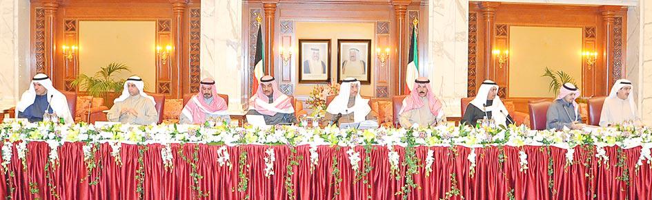 اعتمد مجلس الوزراء مشروع قانون بالموافقة على ربط ميزانية الوزارات والادارات الحكومية للسنة المالية 2014/2015 كما وافق مجلس الوزراء والمجلس الاعلى للتخطيط والتنمية على مشروع قانون خطة التنمية السنوية 2014/2015 وتم رفع المشروعين الى سمو الامير تمهيدا لإحالتهما الى مجلس الأمة.ودعا المجلس خلال اجتماع مشترك مع المجلس الأعلى للتخطيط والتنمية ترأسه رئيس مجلس الوزراء سمو الشيخ جابر المبارك في قصر السيف صباح امس الى اتخاذ خطوات عاجلة لتصحيح مسار الموازنة تجنبا للتداعيات والمخاطر المحتملة على البلاد.