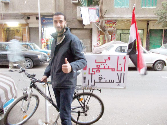 في القاهرة، الشهيرة ببلد العجائب، ربما تصادف الدراجة "فريدة"، التي اختار لها الشاب الثلاثيني محمود يحيى، هذا الاسم الخاص، مُحمَّلة باللافتات والشعارات السياسية، لتكون رفيقته للخلاص من زحام القاهرة أولاً، ومصدراً للتعبير عن آرائه السياسية، الأمر الذي يثير دهشة واستغراب الكثيرين، فور رؤيتهم اللافتة الأخيرة التي وضعها على الدراجة وتقول: "أنا مُنشكح من الاستقرار".محمود، يعمل مدير مبيعات في إحدى الشركات، وهو لا يفارق دراجته، التي ينتقل بها من مسكنه في "حي عابدين" إلى شوارع وسط القاهرة"، منذ فبراير 2013، يقول: "فكرة اللافتة جاءتني بعدما رأيت دراجة بخارية كتب عليها عبارة "ولا يوم من أيامك يا مبارك" -قاصداً الرئيس المصري الأسبق حسني مبارك- فقررت تعليق لافتات تعبّر عن الثورة، لتوصيلي إلى عملي، وتوصيل رسالة إلى المواطن البسيط، وأولى الجمل التي علقتها على دراجتي "فريدة" كانت: "عايز حقي... مرسي سرقني" -قاصداً الرئيس السابق محمد مرسي.