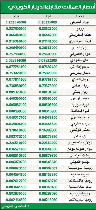 أسعار العملات مقابل الدينار الكويتي