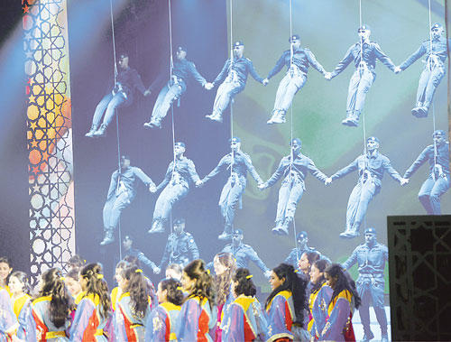 وبدأ الحفل بالنشيد الوطني ثم تلاوة ايات من الذكر الحكيم بعدها بدأ الاوبريت الوطني "كويت الصدق والوفاء" حيث قامت مجموعات من طلبة وطالبات المراحل الدراسية المختلفة في مدارس وزارة التربية بتقديم لوحات فنية متنوعة عكست ما تعيشه دول وشعوب مجلس التعاون الخليجي من لحمة وآمالهم وطموحاتهم المستقبلية والمسؤولية المشتركة التي ستحقق بتعاونهم مزيدا من الامن والامان وبتكاتفهم الرخاء والاستقرار للمجتمعات الخليجية.وتم تقديم هدية تذكارية لسموه وضيف الدولة الكريم بهذه المناسبة.وغادر سموه مكان الحفل بمثل ما استقبل به من حفاوة وترحيب.