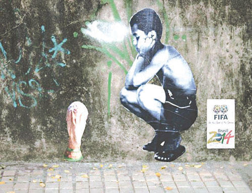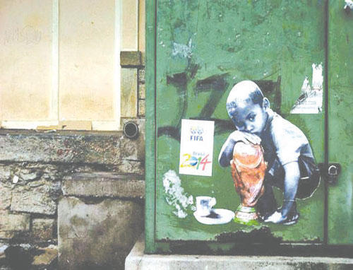من غير قصد، حرَّك كأس العالم 2014 في البرازيل قضية الفقراء. أراد الرسام باولو إيتو أن يعبِّر عن معاناة فقراء الشعب البرازيلي الذي يرى جزء كبير منه أن الدولة تنفق مواردها بكثافة على تنظيم كأس العالم 2014، فى حين أنها تهمل المواطن العادي ولا تهتم بحقوقه وطرق عيشه.جدارية {إيتو} وغيرها من رسوم غرافيتية تختصر الواقع البرازيلي في خضم المونديال، إذ اقترن التحضير لهذا الحدث في البرازيل وللمرة الأولى بمزيد من تظاهرات شعبية احتجاجية، لم تقتصر على العاصمة ريو دي جانيرو، بل امتدت إلى المدن البرازيلية الأخرى وشملت أوساطاً شعبية واسعة. وكان يتوقع أن تحصل إضرابات في البرازيل في اليوم الأول لافتتاح المونديال ولكن عمَّال مترو المدينة في سان باولو صوتوا ضد تجديد إضرابهم الذي هدّد بتعطيل تدفق الجمهور لمتابعة المباراة الافتتاحية لكأس العالم. فبعد إضراب استمر خمسة أيام شكَّل حالة من الفوضى في عاصمة البرازيل الاقتصادية حيث يقطن عشرون مليون نسمة، جاء تصويت عمال المترو الأربعاء الفائت بعدم التحرك مجدداً رغم عدم استجابة الحكومة لمطلبهم بإعادة توظيف 42 عاملاً تم فصلهم على خلفية الإضراب الأخير... كذلك كانت شهدت مدينة ساو باولو احتجاجات ضد الإنفاق الحكومي على كأس العالم الذي وصل إلى 650 مليار دولار، باعتبار أن ثمة أماكن فقيرة في البرازيل أشد احتياجاً لهذا المال. وذكرت تقارير صحفية برازيلية، أن رسوم الغرافيتي أشعلت مواقع التواصل الاجتماعي (فايسبوك، تويتر)، وألهبت سخط الفقراء في بلادها التي تشهد احتجاجات مندّدة بتنظيم المونديال الكروي، مشيرةً إلى أن بعض مواطنيها لا يتعدى أجره الشهري 30 أورو في حين أنفقت الحكومة أغلفة مالية ضخمة على تنظيم المونديال و{تدليل} لاعبي المنتخب، ووصلت القيمة إلى 11 مليار دولار.