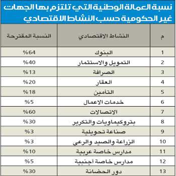 أصدر مجلس الوزراء قراراً بشأن تحديد نسب العمالة الوطنية لدى الجهات غير الحكومية المقدم من برنامج إعادة هيكلة القوى العاملة والجهاز التنفيذي للدولة بعد عدة دراسات قام بها البرنامج.