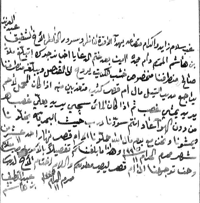 أهدي إليّ الصديق الكريم سعود عبدالرزاق الهاشم قبل فترة من الزمن كتيباً صغيراً من إعداده يلخص فيه تاريخ أسرة الهاشم في الكويت، وبعد قراءة الكتيب تذكرت أن لدي وثيقة عثرت عليها في الأرشيف البريطاني قبل فترة من الزمن، ولم أنشرها، فقررت أن أدمج بين المعلومات التي وردت في الكتيب، وما ورد في الوثيقة الجميلة التي لم تنشر من قبل، ولنبدأ بما ورد في الكتيب ثم نستعرض محتوى الوثيقة. يقول معد الكتيب إن أسرة الهاشم يرجع نسبها الى الحسن بن علي بن أبي طالب كرم الله وجهه، وكانت تسكن في ينبوع النخيل بالحجاز حتى عام 1265م، ثم انتقلت إلى بلاد المغرب وظلوا بها إلى عام 1758م، ثم عاد بعض أبنائهم إلى الجزيرة العربية واستقروا في الإحساء بالمملكة العربية السعودية ونزح عبدالله بن علي بن محمد الهاشم إلى الكويت عام 1799م. وقد ورد في شهادة انتسابهم الصادرة عن رابطة الأشراف الحسنيين والحسينيين بالمغرب أن «الشريف العلوي الإسماعيلي مولاي سعود عبدالرزاق عبداللطيف سعود الهاشم الحامل للجنسية الكويتية بأن جدهم علي بن الأمير السلطان مولاي زين العابدين قد هاجر من المغرب وعاد إلى الإحساء سنة 1170هـ الموافق 1758م.» إذن فإن آل هاشم الأشراف نزحوا إلى الكويت من الإحساء في عام 1799 واستقروا في ما يسمى بفريج الخوص قرب المناخ وبالقرب من بيت يوسف الشاهين الغانم ومنصور السبع وعنبر المطر والمحميد، وفيما بعد بيت الشيخ مبارك الصباح وبيت عبدالكريم بالملح والسجن وتل بهيتة.
