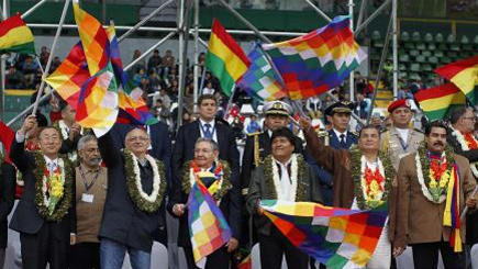 وتشارك الصين غير العضو في المجموعة لعدة اسباب بينها توسيع علاقاتها التجارية مع اميركا اللاتينية، لكن الرئيس شي جينبينغ لن يحضر الاجتماع. ويمثل الصين في اللقاء نائب رئيس اللجنة الدائمة للمجلس الوطني لنواب الشعب الصيني تشن تشو.واكد الرئيس الفنزويلي نيكولاس مادورو ان القادة في القمة "يعملون من اجل نمو اقتصادي مستدام ونظام اقتصادي عالمي جديد".ويصادف عقد هذه القمة في الذكرى الخمسين لقيام هذه المجموعة التي تأسست في 1964 في جنيف من 77 دولة وباتت تضم اليوم 134 دولة اي حوالى ثلثي اعضاء الجمعية العامة للامم المتحدة.وسبق الافتتاح الرسمي للقمة تجمع في استاد في سانتا كروز شارك فيه الاف الاشخاص بينهم نقابيون وممثلون عن مجموعات السكان الاصليين وكذلك ايضا مجموعات تراثية.وامام مضيف القمة الرئيس البوليفي ايفو موراليس، دعا رئيس الاكوادور رافاييل كوريا، أحد اعمدة اليسار الراديكالي في اميركا اللاتينية، الى الوحدة وانتقد محاولة "الانتهاء من الحكومات التقدمية والوطنية".من جهته دعا الرئيس الكوبي راوول كاسترو الدول المشاركة في القمة الى الدفاع عن فنزويلا. وقال "بدفاعنا عن فنزويلا انما ندافع عن بوليفيا وسائر اميركا خاصتنا". واضاف كاسترو ان "الاوليغارشيين الذين لم يتمكنوا من التغلب على الرئيس (الفنزويلي الراحل) هوغو شافيز يعتقدون أن الوقت قد حان للإطاحة بالرئيس (الفنزويلي نيكولا) مادورو وبالثورة البوليفارية فلندافع عن وحدتنا".واكد مادورو من جهته "نحن نواجه مؤامرة ترمي الى تقسيم وطننا، وترمي الى اغراقه في العنف، وترمي الى تبرير تدخل دولي في شؤونه، وكل هذا بهدف الاستيلاء على اكبر احتياطي نفطي في العالم"، داعيا الى قيام "نظام اقتصادي عالمي جديد".اما ايفو موراليس فوجه في كلمته تحذيرا الى الولايات المتحدة ورئيسها باراك اوباما. وقال "اذا واصل السيد اوباما الاعتداء على شعب فنزويلا فانه، وفي مواجهة الاستفزاز والاعتداء، ستصبح فنزويلا واميركا اللاتينية بأسرها فيتنام ثانية للولايات المتحدة".وكان موراليس استقبل خلال النهار مندوب الصين الى القمة نائب رئيس اللجنة الدائمة للمجلس الوطني لنواب الشعب الصيني الذي وضع في تصرف بوليفيا قرضا بقيمة 80 مليون دولار لتحديث شركة الطيران البوليفية "بوا" وشراء اربع طائرات.بدوره قدم النائب الاول للرئيس الايراني اسحق جهنجيري لموراليس خطا ائتمانيا بقيمة 200 مليون دولار لتطوير قطاعات الطب والصناعة الدوائية والزراعة.أما آخر الرؤساء الذين وصلوا الى بوليفيا لحضور القمة فكان رئيس الاوروغواي خوسيه موخيكا الذي قال لدى وصوله "يوما ما ستصبح أعلامنا علما واحدا"، علم "الوطن الكبير"، في اشارة الى حلم قيام اتحاد بين دول اميركا اللاتينية الذي يراود الكثيرين.ومن المفترض ان يصدر عن القمة اعلان ختامي الاحد يتضمن خصوصا، بحسب المنظمين، رؤية الدول المشاركة بشأن الأهداف الإنمائية للألفية التابعة للأمم المتحدة ولا سيما الحد من الفقر المدقع ووفيات الاطفال وتوفير التعليم والمساواة بين الجنسين وتطبيق التنمية المستديمة.وهذه القمة الدولية، الاولى في بوليفيا، وصفها موراليس ب"التاريخية"، مؤكد ان نجاحها "سيعطي مكانة لاميركا اللاتينية بأسرها".