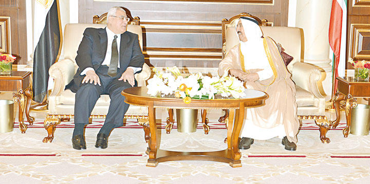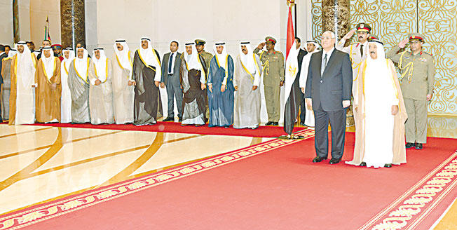 اتسمت المباحثات التي أجراها سمو الأمير الشيخ صباح الأحمد مع الرئيس المصري المؤقت المستشار عدلي منصور بجو ودي عكس روح الاخوة التي تتميز بها العلاقة التاريخية بين البلدين الشقيقين. ووصل منصور والوفد الرسمي المرافق له إلى البلاد ظهر امس في زيارة رسمية استغرقت يوما واحدا. وكان على رأس مستقبلي منصور على أرض المطار سمو امير البلاد وسمو ولي العهد الشيخ نواف الاحمد، ورئيس مجلس الامة مرزوق الغانم، ورئيس مجلس الوزراء سمو الشيخ جابر المبارك، ونائب وزير شؤون الديوان الاميري الشيخ علي الجراح، وكبار المسؤولين بالدولة وكبار القادة بالجيش والشرطة والحرس الوطني.