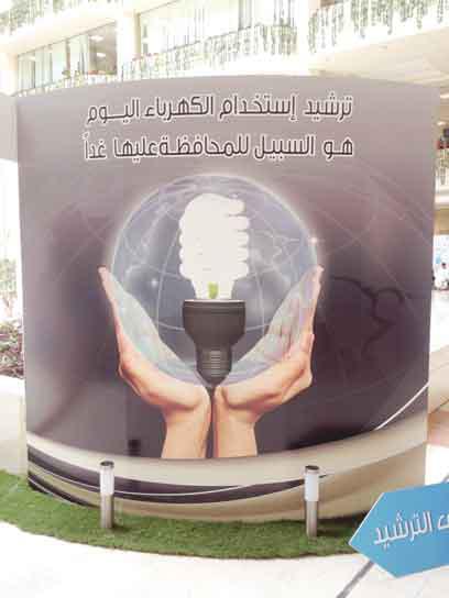 واصلت وزارة الكهرباء والماء حملتها التوعوية لإيقاف الهدر والإسراف في الاستهلاك، بتحويل رواق الوزارة إلى لوحة إعلامية توعوية كبيرة، تقول من خلالها «لا للإسراف»، «قطرة مياه هي الحياة فحافظوا عليها».