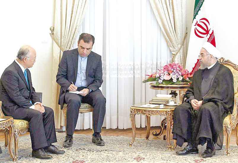 من جهته، شدد الرئيس روحاني على أن أسلحة الدمار الشامل لا مكان لها في العقيدة الدفاعية لإيران، متمنيا أن تضطلع الوكالة الدولية للطاقة الذرية بدور أكبر لتأكيد شفافية البرنامج النووي الإيراني.وفي ما يتعلق بالمناقشات مع القوى العظمى، أعرب روحاني عن أمله في أن تتصرف مجموعة 5+1 بطريقة تعطي الشعب ومجلس الشورى الإيراني الثقة الضرورية لمتابعة المناقشات، مشيرا إلى أن قدرة إيران الصاروخية غير قابلة للتفاوض تحتأي عنوان أو على أي مستوى. واتفقت إيران ومجموعة خمسة زائد واحد (الولايات المتحدة وروسيا وبريطانيا وفرنسا والصين وألمانيا) في 19 يوليو في فيينا على مهلة أربعة أشهر إضافية حتى 24 نوفمبر من أجل التوصل إلى اتفاق نهائي من شأنه أن يضمن الطابع السلمي لبرنامج إيران النووي مقابل رفع العقوبات الدولية على إيران.وقالت وكالة الانباء الايرانية الرسمية أمس إن" أمانو التقى وزير الخارجية الايراني محمد جواد ظريف ثم الرئيس حسن روحاني".ونقلت الوكالة عن ظريف تأكيده "تصميم ايران على التعاون مع الوكالة الدولية للطاقة الذرية في الموضوع النووي".وتستأنف المفاوضات قبل انعقاد الجمعية العامة السنوية للأمم المتحدة المرتقبة في 16 سبتمبر.وتأتي زيارة أمانو في حين يفترض ان ترد ايران بحلول 25 اغسطس على اسئلة للوكالة الدولية تتعلق بأبحاث أجرتها طهران حتى 2003 وربما بعدها في المجال النووي العسكري.(طهران- أ ف ب، ارنا)