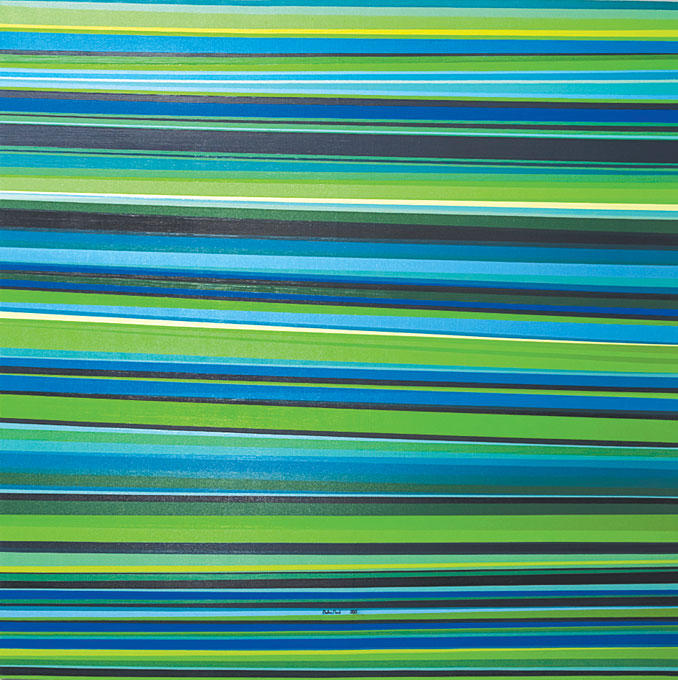 تتألف لوحات مطيع مراد من شرائط متوهجة من اللون، ممثلة بذلك رحيلاً عن البنية الهندسية القاسية التي تواجدت في أعماله السابقة التي تذكرنا بأعمال فنانين عالميين وبالزخرفة الإسلامية المشرقية. ويصف الفنان هذا التحول الأسلوبي بالترياق البصري للاضطرابات السياسية الحاصلة في العالم العربي. فبينما كانت الأعمال السابقة محددة بنهج رياضي صارم وأقرب إلى أعمال كاندنسكي وبول كلي وغيرهما من تكعيبيين، إلا أن لوحات مراد الجديدة تتسم بتعبير تجريدي أكثر مرونة وانسياباً وتلقائية، ولا تتسم بتعقيدات هندسية بل هي أقرب إلى البعد البصري، فيها شيء من الحركات اللونية التي نراها على شاشة الكومبيوتر أو تلك الموجات التي تنبعث من خلال الموسيقى الإلكترونية وغيرها، ولا نبالغ بالقول إنها تحمل بعضاً من طيف السجاد المشرقي.
