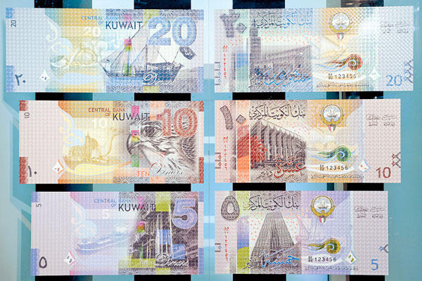 وأضاف أن أوراق النقد الجديدة بفئاتها كافة ستكون متاحة للجمهور عبر أجهزة السحب الآلي لدى كل البنوك العاملة في البلاد وداخل مقرات تلك البنوك وفروعها اضافة الى أجهزة السحب الآلي لشركة "كي نت" حيث قام "المركزي" بتزويد كل تلك الجهات بأوراق النقد الجديدة للاصدار السادس للدينار الكويتي.وأوضح أن الاصدار السادس الجديد لفئات أوراق النقد الكويتي جاء بناء على قرار مجلس الوزراء بجلسته المنعقدة في العاشر من يونيو العام الماضي باعتماد التوصية الصادرة عن مجلس ادارة بنك الكويت المركزي بشأن الاصدار السادس الجديد لأوراق النقد الكويتي بما في ذلك اعتماد فئات الاصدار وتصميمها وألوانها وسائر مواصفاتها الأمنية والفنية.المواصفات الأمنيةوذكر أن الاصدار السادس الجديد للنقد الكويتي يأتي في اطار السعي المتواصل للبنك المركزي لمواكبة أفضل التوجهات العالمية للبنوك المركزية وبما يستجيب للتطورات التكنولوجية في صناعة طباعة أوراق النقد لاسيما ما طرأ من تطورات في مجال تحسين العلامات والمواصفات الامنية وزيادة جودة أوراق النقد عند تصميمها وطباعتها ليكون الاصدار الجديد للدينار الكويتي أكثر أمانا وجمالا وأعلى جودة ومتانة.وبين أن ذلك يعكس إدراك "المركزي" الكامل للمسؤوليات المنوطة به بموجب أحكام قانون إنشائه المتعلقة باصدار النقد وحماية أوراق النقد الكويتي وتحصينها عبر الحرص الدائم على الاستفادة من التطورات العالمية في صناعة أوراق النقد ومواصفاتها الفنية والأمنية أخذا بالاعتبار مضي نحو 20 عاما على طرح الاصدار الخامس الحالي للتداول.وفي اطار بيان الاجراءات المتعلقة بطرح الاصدار السادس الجديد للتداول اعتبارا من الغد تناول د. الهاشل أربعة جوانب من تلك الاجراءات يتمثل أولها في أن فئات أوراق النقد الكويتي للاصدار الجديد هي الفئات الحالية نفسها (الاصدار الخامس) دون اضافة أي فئات جديدة وهي فئات (ربع دينار ونصف دينار ودينار وخمسة دنانير و10 دنانير و20 دينارا).قرار سحب العملة وعن ثاني هذه الجوانب شدد على أن طرح أوراق النقد من الاصدار السادس الجديد للدينار الكويتي للتداول لا يمس صلاحية أوراق النقد من الاصدار الخامس للدينار الكويتي المتداولة حاليا والتي تحتفظ بقوة الابراء كعملة قانونية الى حين صدور قرار سحبها من التداول لاحقا.وقال د. الهاشل انه سيتم الاعلان عن قرار السحب في حينه وعليه والى حين صدور قرار السحب فإن أوراق النقد الحالية من الاصدار الخامس ستبقى صالحة للتداول بحكم القانون جنبا إلى جنب أوراق النقد الجديدة للاصدار السادس في المرحلة الحالية.وعن الاجراء الثالث أفاد بأن البنك المركزي يقوم منذ 19 مايو الماضي بحملة اعلامية توعوية واسعة للاصدار السادس الجديد لاوراق النقد الكويتي بهدف توعية الجمهور بالجوانب المختلفة لمواصفات هذا الإصدار وبصفة خاصة ما يتعلق بالتصميم الجديد للأوراق النقدية بمختلف فئاتها وكيفية التعرف على العلامات الأمنية في كل منها.وأشار الى أن هذه الحملة الاعلامية التوعوية شملت مختلف وسائل الاعلام المرئي والمسموع والمطبوعات الورقية الايضاحية لتوعية الجمهور بتصميم الأوراق النقدية الجديدة وعلاماتها الأمنية وكيفية التعرف عليها.وبين أنه تم تصميم واخراج وانتاج فيديو اعلاني للتعريف بالاصدار ومواصفاته وعلاماته الأمنية وعرض في عدد من وسائل الاعلام المرئي واضافته الى الموقع الرسمي لبنك الكويت المركزي على شبكة الانترنت حيث يمكن مطالعته في أي وقت مع نشر ذلك الفيديو من خلال وسائل التواصل الاجتماعي تعميما للفائدة.تواصل مستمروأكد ان بنك الكويت المركزي سوف يظل على تواصل مستمر مع الجمهور لشرح وتوضيح المواصفات الفنية والأمنية لفئات أوراق النقد للاصدار السادس الجديد وأي أمور أخرى تتعلق بذلك الشأن.وقال: "بالنسبة للاجراء الرابع فانه في اطار تنفيذ برنامج طرح الاصدار السادس الجديد للنقد الكويتي للتداول فقد تم استكمال تدريب موظفي البنوك المحلية المختصين والجهات الأمنية ذات 
