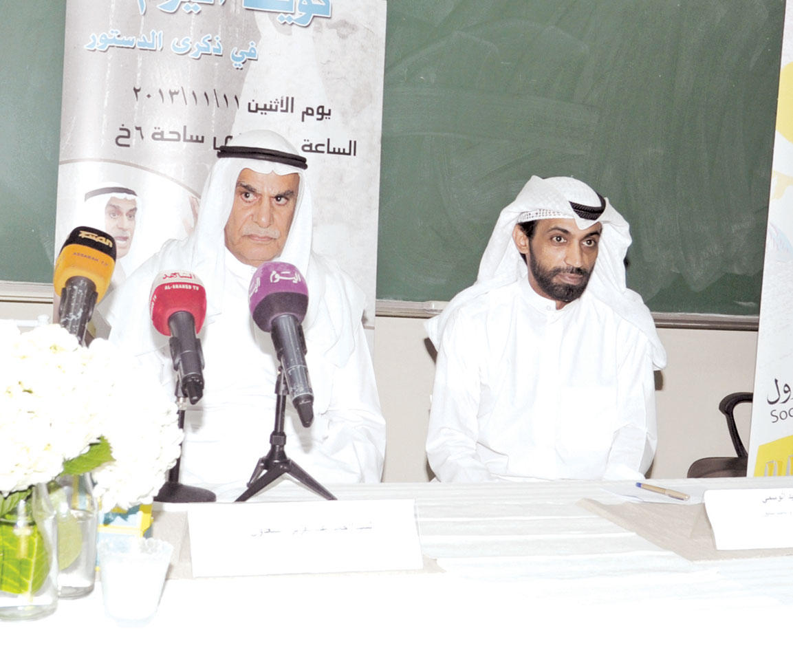 واضاف: «اننا لا يمكن أن نستذكر الدستور دون أن نتحدث عمن أصدره، وهو الشيخ عبدالله السالم، الذي يتضح لنا أنه إنسان ويحترم الشعب الكويتي قبل صدور الدستور، واتخذ إجراءات لا اعتقد ان هناك أحدا يتخذها».واشار الى ان «الشيخ عبدالله السالم اصدر وثيقة وضعت حدا للاستيلاء على الاراضي، واستكمل هذه الخطوة بعدة خطوات، فهو الذي حفظ أرض الكويت، ولو لم يتخذ هذا القرار لما كنا نقف اليوم في هذا المكان، ولأصبح بإمكان أي احد امتلاك الارض بوضع اليد». من جانبه، اكد أستاذ القانون بجامعة الكويت د. عبيد الوسمي أنه «من الصعوبة ان نقول إن هناك نظاما دستوريا، والدستور هو وثيقة للحقوق والحريات، ويوضح شكل الدولة واتخاذ القرار والمحاسبة على اتخاذ القرار، وهو وثيقة بين السلطة والحرية».وزاد الوسمي ان «الدستور علق ولم يعد موجودا من الناحية الفنية»، مضيفا: «حيث توجد السلطة توجد المسؤولية ولا توجد وثيقة تعطي صلاحيات وتمنع المحاسبة عليها، وفي تقديري ان الدستور غير موجود شكليا ومفاهيمه غير مطبقة طوال السنوات الماضية».واردف الوسمي انه «سأل رئيس الوزراء عن مقدرة الحكومة على استيعاب مدخلات سوق العمل، والمشاريع التي ستستوعب هذه الاعداد الكبيرة فقال: إن الكويت فيها خير ونعمة، واتضح لي ان سؤالي غير مفهوم لمتخذ القرار، لهذا السبب نعيش في قلق، وهذا القلق ليست فيه مبالغة منا، لاسيما ان عملية وضع الشخص غير المناسب في المكان غير المناسب مستمرة منذ ٥١ عاما».واستطرد: «في عام 2008 كانت هناك ميزانية مخصصة للدعم تقدر بـ80 مليون دينار لمحطات الوقود وارتفعت إلى مليار دينار... لماذا هذه الزيادة الكبيرة التي وصلت إلى ١٤ ضعفا، وهل هناك توسع وتقدم اقتصادي؟».وعن النزول للشارع، شدد على أن «هذه هي الطريقة المناسبة مع حجم وطريقة الاعتداء الحاصل، وهو موجود في كل الدول المتقدمة يوميا كطريقة واسلوب للتعبير، ولكننا مازلنا شعبا طيبا ونتعامل مع التجاوزات الكبيرة بأقل مما يجب».