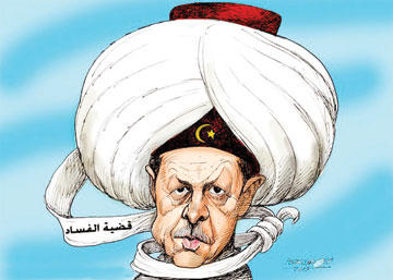 بعد أن بدأت التحقيقات في الفساد تحوم حول حكومته وعائلته في ديسمبر، لجأ رجب طيب أردوغان، رئيس وزراء تركيا، إلى اتباع الأساليب نفسها التي اتبعها مع مظاهرات كبيرة ثارت ضد حكومته، وهي وضع اللوم على مؤامرة عالمية تحاك ضد تركيا، وأن هذه المؤامرة هي السبب في مشكلاته.وقال أردوغان في كلمة ألقاها أثناء تجمع عقد في مقاطعة مانيسا غربي تركيا، «إن التحقيقات التي طالت حتى الآن أربعة من الوزراء السابقين وشخصيات من رجال الأعمال البارزين، إضافة إلى ابنه، هي جزء من جهود منسقة لإضعاف تركيا، كانت بذورها قد زرعت في يونيو الماضي، عندما تجمعت حشود من المتظاهرين في حديقة جيزي في إسطنبول للاحتجاج على حكمه». وقال «إن القوى المناوئة لتركيا لم تكتف بالاضطرابات التي أحدثتها حول جيزي».