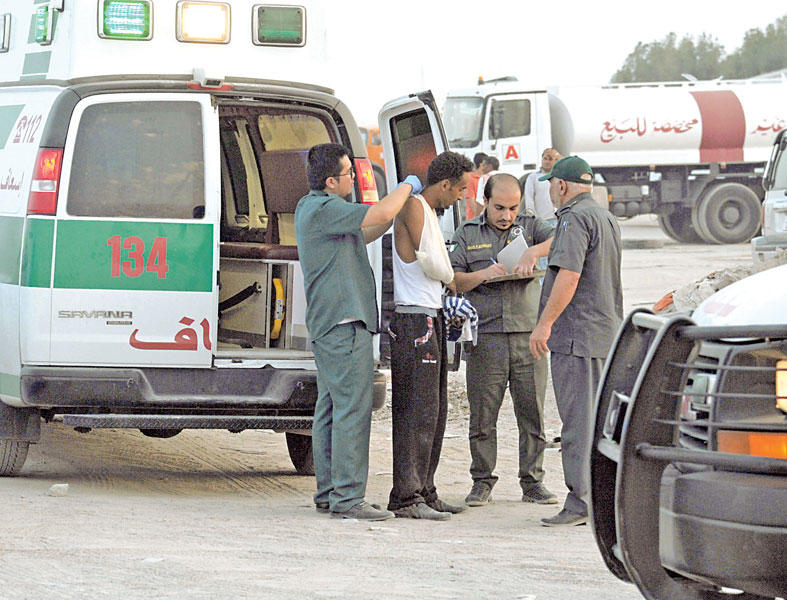 قُتل وافد مصري وأصيب 35 آخرون من الجنسيات المصرية والهندية والبنغالية، في مشاجرة دامية وقعت عصر أمس في سكن العمال التابع لإحدى الشركات في منطقة كبد.وقالت معلومات أمنية استنادا إلى التحقيقات الأولية إن شرارة المشكلة بدأت مع مشاجرة محدودة بين مصري وهندي، تبادلا خلالها الضرب، قبل أن يتطور الخلاف لاحقا ويأخذ بعدا آخر مع انتصار أفراد الجاليتين المصرية والهندية في السكن، والبالغ عددهم أكثر من 1300 شخص لمواطنيهما، ما أدى الى مضاعفات كبيرة.