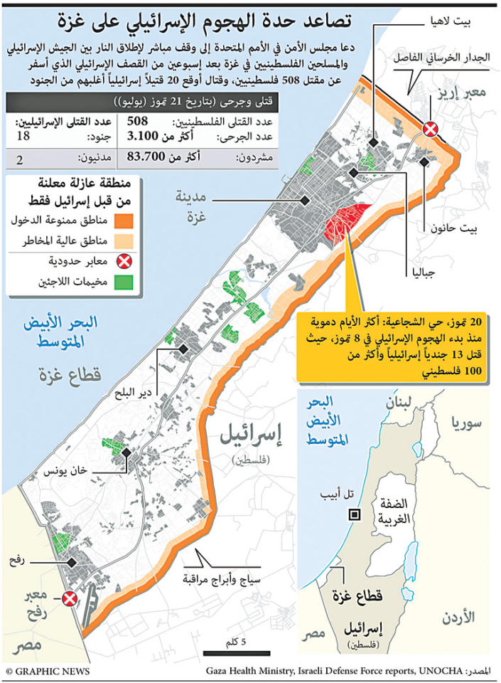 واصلت إسرائيل أمس حرق قطاع غزة عبر قصفه برا وبحرا وجوا، وفي وقت اعترفت بفقد الجندي شاؤول أرون، الذي أعلنت «حماس» أسره، لكنها رجحت مقتله، كما ذكرت «الجريدة» في معلومات خاصة حصلت عليها أمس الأول.