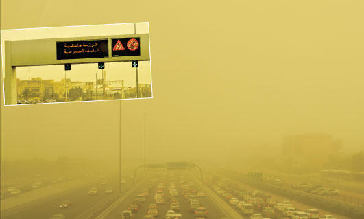 أثارت عاصفة الرياح الشمالية أمس موجة من الغبار غطت أنحاء البلاد وتسببت في تدني مستوى الرؤية.