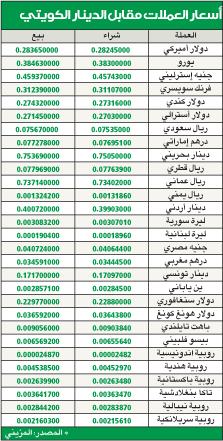 أسعار العملات مقابل الدينار الكويتي