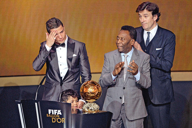 ورأى بيليه ايضا ان "البرتغالي كريستيانو رونالدو مهاجم ريال مدريد الاسباني، لاعب جيد ايضا وهو نال لقب الجائزة الذهبية لافضل لاعب في العالم لعام 2013 بعدما كان الاكثر تسجيلا للاهداف".وطرح بيليه اشكالية خطف المهاجمين للاضواء بعكس لاعبي الوسط امثال الفرنسي فرانك ريبيري والاسبانيين اندريس انييستا وتشافي هرنانديز الذين لا يحظون بنفس المكانة من الاهتمام لانهم لا يسجلون كثيرا من الاهداف.ورشح بيليه منتخب البرازيل لاحراز كأس العالم 2014 التي تستضيفها بلاده.