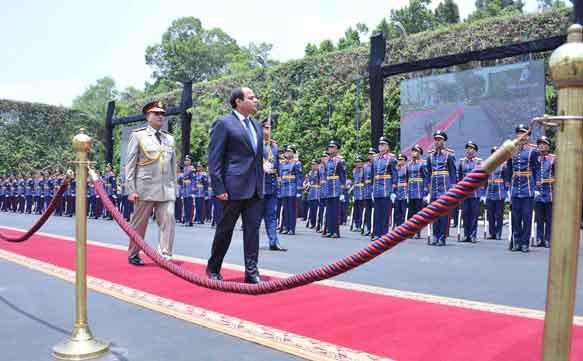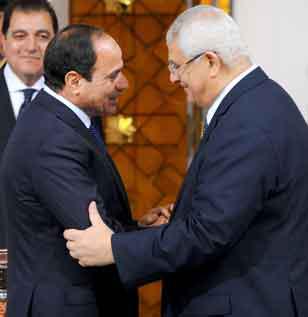 • المشير يؤدي اليمين أمام «الدستورية» ويتسلم السلطة من منصور بوثيقة تحتفي بـ «الثورتين»• حضور عربي رفيع... والرئيس المنتخب يوجه تحية للعاهل السعودي ويتطلع إلى «المانحين»