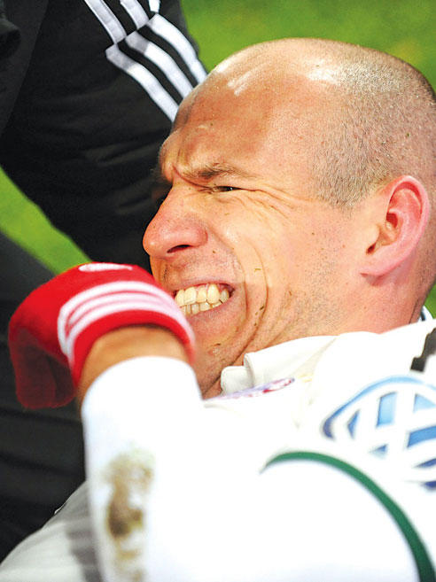أعلن نادي بايرن ميونيخ الألماني لكرة القدم امس غياب نجمه الهولندي أريين روبن ستة أسابيع بعد تعرضه للإصابة بجرح عميق في الركبة خلال مباراة الفريق مع أوغسبورغ في الدور الثالث لكأس المانيا أمس الأول.وأكد هانز -فيلهيلم مولر- فوهلفارت طبيب الفريق البافاري "أن روبن يعاني من تهتك عميق مفصل الركبة ووصل إلى عظام الفخذ ونزف كمية كبيرة من الدم".