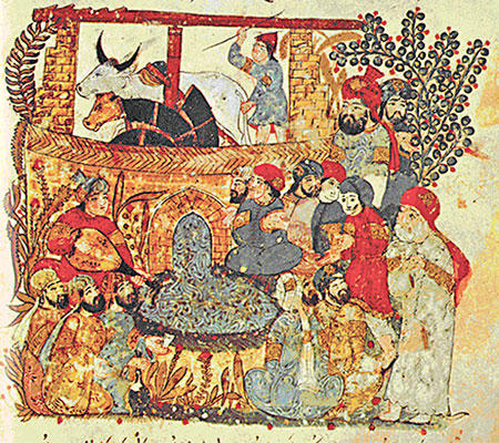 وهنا امتثل {بزرجمهر} وزير الملك الفارسي {كسرى أنوشروان}، وبسط الرمل ونظر إليه ساعة من الزمان، ثم رفع رأسه وقال: {اعلم أيها الأمير إننا من الآن وصاعداً لا نحتاج إلى أن نباشر حرباً ولا قتالاً لأننا سنظفر بأعدائنا الهاربين، بأسهل طريقة، وقد ظهر لي، أيضاً، أنهم قربوا من هذه المدينة، في ساعة مقتل {آفة الرقاب}، قاصدين مدينة {جابرصة} العظيمة، وأن الحاكم عليها هو ملك عظيم جليل، ذو قدر وشأن، يعبد الله سبحانه وتعالى دون غيره، وسيكون لنا من أوفى المحبين}.قال الراوي: ثم سُرّ الأمير حمزة، لما سمع نبوءة الوزير، وعزم على أن يسيروا في اليوم الثاني، لأن هذه المدينة لا تبعد أكثر من يومين عن مدينة {العبيد}.ولما أشرق الصباح، هبوا من الرقاد وأسرعوا إلى الجياد فامتطوها وأقلعوا عن تلك المدينة، بعدما غادروها قاعاً صفصفاً ينعق فيها البوم والغربان، وساروا بذلك السر الوسيع بطول البيد، يجوبون الفلوات، والأمير حمزة في مقدمة الجيش، وعلى يساره الشيخ الطبيب والوزير {بزرجمهر}، وأولاده، وعلى يمينه زوجته {مهردكار} وأخوها كسرى، وهو أشد الناس طرباً وسروراً.وأما ما كان من أمر {بختيار} ورفيقه، فإنهم بعدما خرجوا من مجلس {آفة الرقاب}، ومعهم كسرى أنو شروان، ناموا تلك الليلة وهم يأملون في النصر، ولما أشرق الصباح افتقدوا {كسرى} فلم يجدوه، فعلموا عندئذ أنه هرب إلى العرب ولحق بهم، تكدَّر {بختيار} ففرك الخاتم واستحضر المارد، وطلب منه الذهاب في الحال إلى معسكر العرب، ليعود بكسرى أينما وجده، فأجابه المارد قائلاً: {لا أقدر يا سيدي على القيام بذلك، لأني لا أستطيع الدخول إلى معسكر العرب، بقصد الضرر بهم والاعتداء عليهم، خوفاً من {اسما بري} وبأسها}.تكدر {بختيار} لذلك، وأوصى {الخوند} وابنه {ياقوت} بكتمان هذا الخبر، عن {آفة الرقاب}، خوفاً من أن يسيء بهم ظنه، فصبر إلى أن خرج {آفة الرقاب} إلى معمعة القتال، فوقفوا على الأسوار بحيث يشاهدون كل ما يحصل بينه وبين العرب، وحين رأوا مقتل {آفة الرقاب} العجيب، الذي فصم ظهورهم وقطع حبال أملهم، هربوا إلى خارج المدينة من الجهة الثانية، وهناك تشاوروا في ما يجب عمله وإلى أين يسيروا.وكان {بختيار} عالماً بوجود مدينة تسمى {جابرصة}، وسكانها لا يعبدون غير الواحد الصمد، فساءه ذلك جداً، ولكنه علم أنه لا يقدر أن يلتجئ إلى غير هذه المدينة، فإن أصاب نجاحاً كان خيراً، وإلا فيرجع برفيقيه وينتقلون كل يوم من مكان إلى مكان، إلى أن يدركهم الحمام.قال الراوي: منذ عزم {بختيار} على إجراء ما ارتآه، استحضر المارد، وأمره بأن يحملهم جميعاً ويطير بهم إلى مدينة {جابرصة} الشهيرة من دون أدنى تعويض، فأطاع المارد بكل خضوع، وحملهم على كاهله وطار بهم في طبقات الجو، حتى أصبحوا ينظرون إلى الأرض فيرونها قطعة صغيرة مستديرة، مثل الهالة، واستمروا على هذه الحالة، حتى أشرفوا على مدينة {جابرصة}، وخطا المارد خطوة واحدة فوق أسوارها فصرخ من الألم ورجع إلى الوراء، فسقط بهم في سهل المدينة وقد وقع على الأرض مغشياً عليه.هنا أصيب {بختيار} بالهلع، وظن أنه مات، وتعجب من ذلك غاية العجب، فاقترب منه ووضع يده على قلبه، فأحس بحراك ضعيف فأشرق في وجهه عند ذلك شعاع الأمل، وأتى بماء فرشّ على وجهه وصبر عليه برهة وجيزة، فاستيقظ المارد من سباته المرعب ثم نظر حوله بطرف شاخص باهت، فسأله بختيار قائلاً: {ويلك وما حصل لك حتى عدلت عن الدخول بنا إلى البلد ورجعت بهذه الهيئة مغمياً عليك؟}. فأجابه المارد: {اعلم يا سيدي أن هذه المدينة العظيمة، كان يسكنها من قديم الزمان ملك عظيم الشأن، وكان يعبد الله ولا يطيق النظر إلى عبادة الأوثان، أو عبادة النار، وكي يمنع دخولهم إلى مدينته جعل عليها هذه الأرصاد، التي لما شممت رائحتها أغمي علي ولو تقدمت خطوة واحدة لكانت حرقتني}.فتعجَّب {بختيار} من ذلك، وقال له: كيف يمكننا أن ندخل المدينة ونحن، كما تعلم، من عُبَّاد النار؟} فأجابه أن ذلك أمر سهلٌ جداً، وهو أن تتظاهروا بعبادة الله لانهم من الإنس، لا سلطة للأرصاد عليكم، وأما أنا فكو