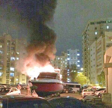 وشرع رجال الإطفاء فور وصولهم إلى مكان البلاغ في مكافحة الحريق ومحاصرته نظرا لتوقف العديد من المركبات بجانب اليخت، وحضر إلى الموقع بجانب رجال الإطفاء رجال الأمن، وتم تسجيل تقرير إطفائي بالحادث.