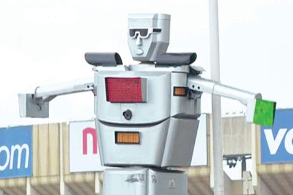 لا يكتفي هذا الشرطي ذو المظهر الودي بإبلاغ السيارات متى تتوقف ومتى تنطلق، ولكنه يقوم أيضاً بإرسال أشرطة إلى السلطات المركزية تصدر على اثرها مخالفات مرور. وفي هذا الزمن ليس من غير المعتاد وجود آلات تصوير تسجل حركة السيارات عند التقاطعات. وليس من غير المعتاد أن تكون آلات التصوير "مخفية" داخل شرطي آلي عملاق.من أجل مراقبة حركة السير والاختناقات في كينشاسا، وهي أكبر مدن جمهورية الكونغو الديمقراطية، وضعت الشرطة في الآونة الأخيرة شرطياً آلياً عملاقاً لديه 4 آلات تصوير مع ذراعين دوارين لإشارات مرور في وسط نقطة تقاطع مزدحمة. ولدى هذا الإنسان الآلي أيضاً النظارات الشمسية ذاتها التي يرتديها في العادة رجال شرطة كينشاسا.