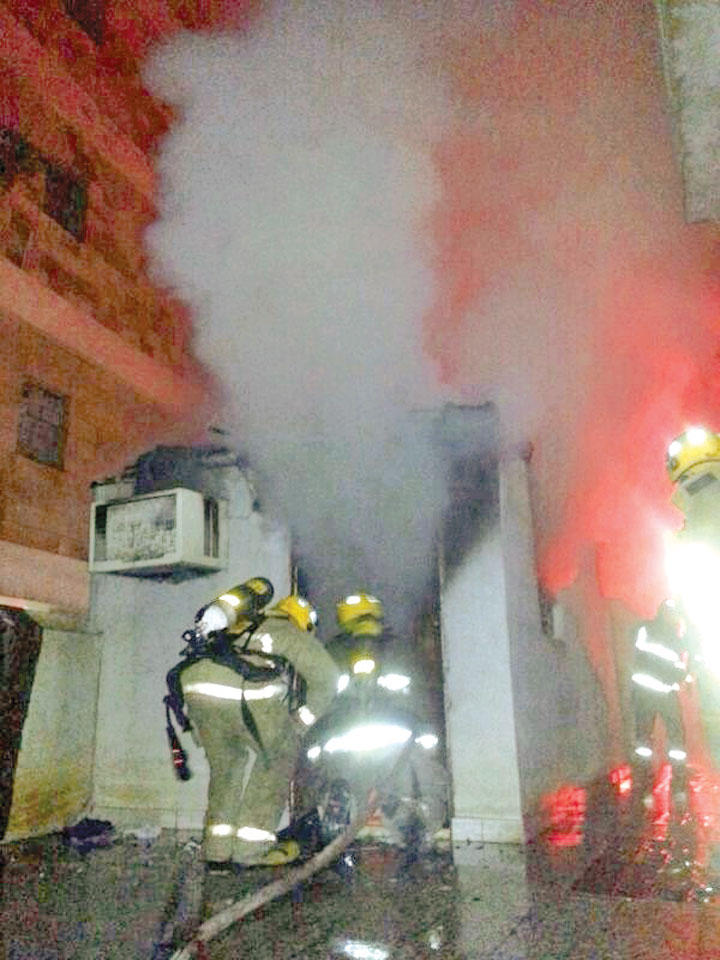 عمليات إخلاءوأشار العقيد الامير إلى أنه وفور تلقي البلاغ تم تحريك مراكز اطفاء الفروانية والعارضية الصناعي الى موقع البلاغ، بقيادة مدير اطفاء المحافظة العقيد حسين اسد، مضيفا ان رجال الاطفاء وفور وصولهم طلبوا الاسناد من فرقة الانقاذ الفني، نظرا لان الحادث يتطلب عمليات اخلاء فوري لسكان المجمع. وذكر ان رجال الاطفاء تمكنوا من اخلاء 100 شخص من سكان المجمع، ثم عملوا على مكافحة الحريق، وحالوا دون امتداده الى الشقق المجاورة، متابعا ان رجال الاطفاء وبعد اخلاء المجمع واخماد الحريق استدعوا ضباط وحدة التحقيق لمعرفة اسباب اندلاع النيران.ولفت إلى أن الحادث اسفر عن اصابة رجلي اطفاء بحالة اختناق واجهاد حراري، كما ان وافدة عربية تبلغ 16 عاما اصيبت بحالة اختناق، وتم علاج جميع المصابين في موقع الحادث من قبل فنيي الطوارئ الطبية.«حمل» زائدوفي تفاصيل الحادث الثاني، قال العقيد الأمير إن غرفة عمليات الادارة تلقت بلاغا صباح أمس الاول، يفيد باندلاع حريق في غرفة في سطح احدى العمارات بحولي، مشيرا إلى أنه وفور تلقي البلاغ تم تحريك مركز اطفاء حولي الى موقع البلاغ.وزاد ان رجال الاطفاء وفور وصولهم عملوا على اخماد الحريق الذي تبين انه اندلع بسبب الحمل الكهربائي الزائد المستخدم في الغرفة، والتي تستخدم كسكن للعزاب، مشيرا إلى أن رجال الاطفاء سيطروا على الحريق بسرعة كبيرة، وحالوا دون امتداده الى باقي ادوار العمارة، موضحا ان الحادث اسفر عن اصابة رجل اطفاء بحالة اجهاد حراري، وتم علاجه في موقع الحادث من قبل فنيي الطوارئ الطبية.