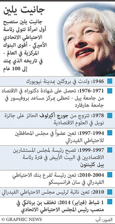 سجلت جانيت يلين الخبيرة الاقتصادية والمتحدثة المفوهة اسمها في صفحات التاريخ الأميركي، حين صادق مجلس الشيوخ بالسادس من يناير 2014 على اختيارها لتكون رئيس بنك الاحتياطي الفدرالي الأميركي (المركزي)، وبهذا ستكون أول امرأة لرئاسة البنك في تاريخه الذي يمتد إلى مئة عام.وعملت يلين (67 عاما) نائبة لرئيس المركزي بن برنانكي منذ عام 2010، وستحل محله حين تنتهي ولايته نهاية الشهر الجاري، وستتولى بذلك زمام أكبر اقتصاد بالعالم، وتصبح أقوى شخصية بعالم المال.
