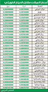 أسعار العملات مقابل الدينار الكويتي